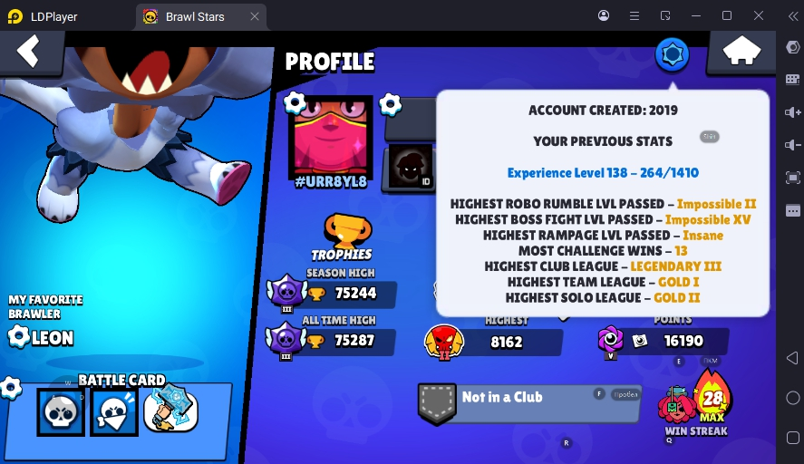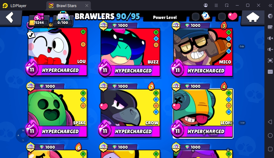 247 SKINS 💯 75.244 CUPS 🏆 90 BRAWLERS 🐼 27 HYPERCHARGED 🩸 30 MAX BRAWLERS 💛 ANTIVIRUS 8-BIT ❤️ ROBO MIKE ❤️ PHOENIX CROW ❤️ WHITE WOLF LEON ❤️ FENRIR BUZZ 💯