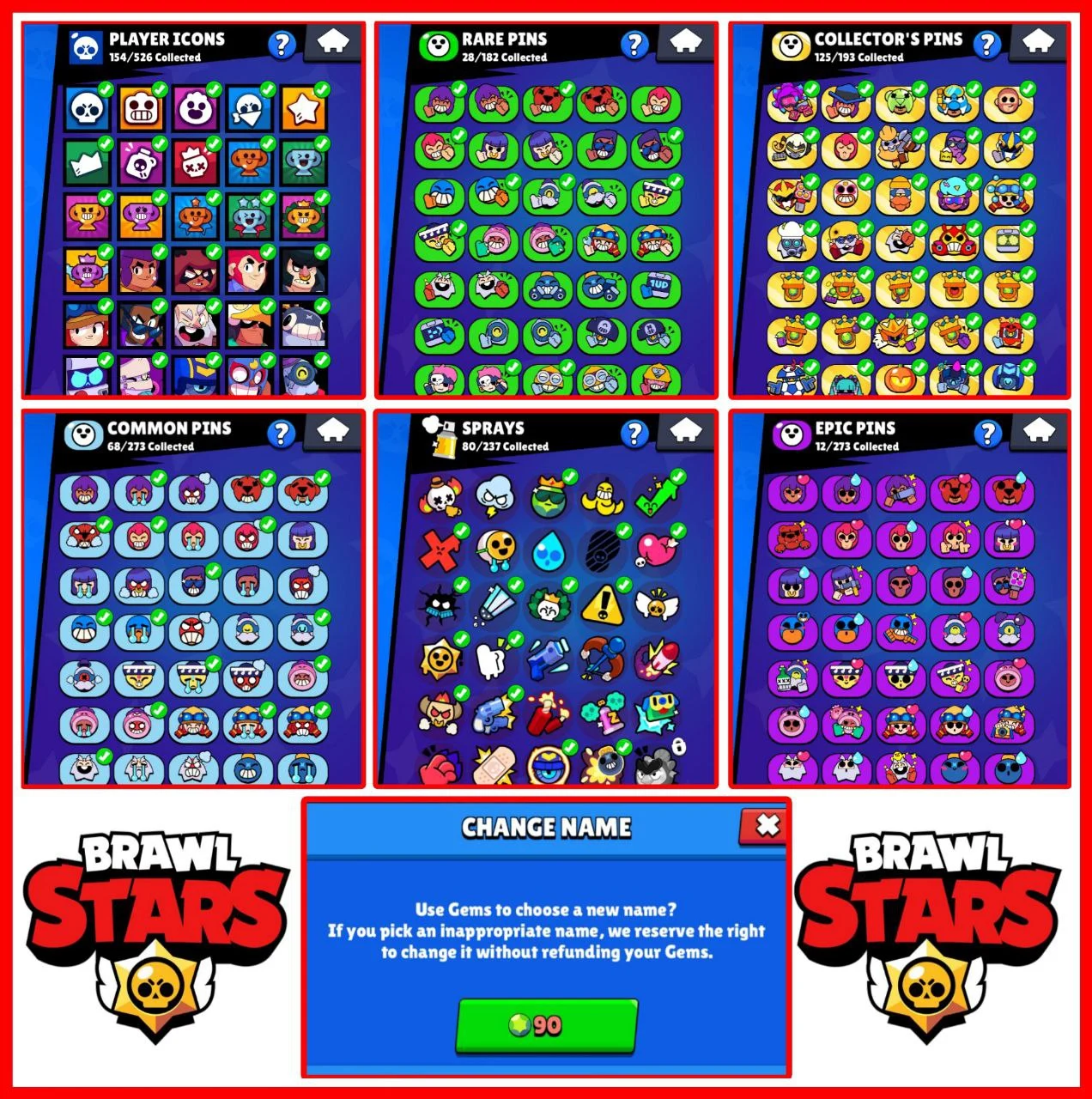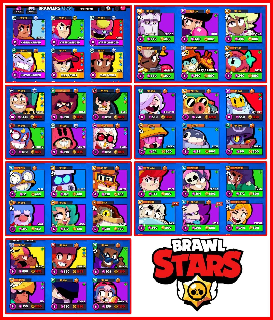 26000+ TROPHIES 🏆 97 SKINS 👑 73 BRAWLERS ✨6 MAX BRAWLER ✨4 HYPERCHARGED BRAWLER ✨90 GEMS NAME CHANGE 💎 INSTANT DELIVERY 🚚