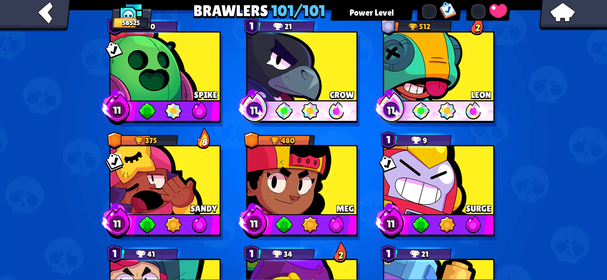 💜329 SKINS💜58K TROPHIES💜ALL BRAWLERS (101)💜59 HYPERCHARGED💜27 PRESTIGE💜18 BUFFIES💜37 MAXED BRAWLERS💜