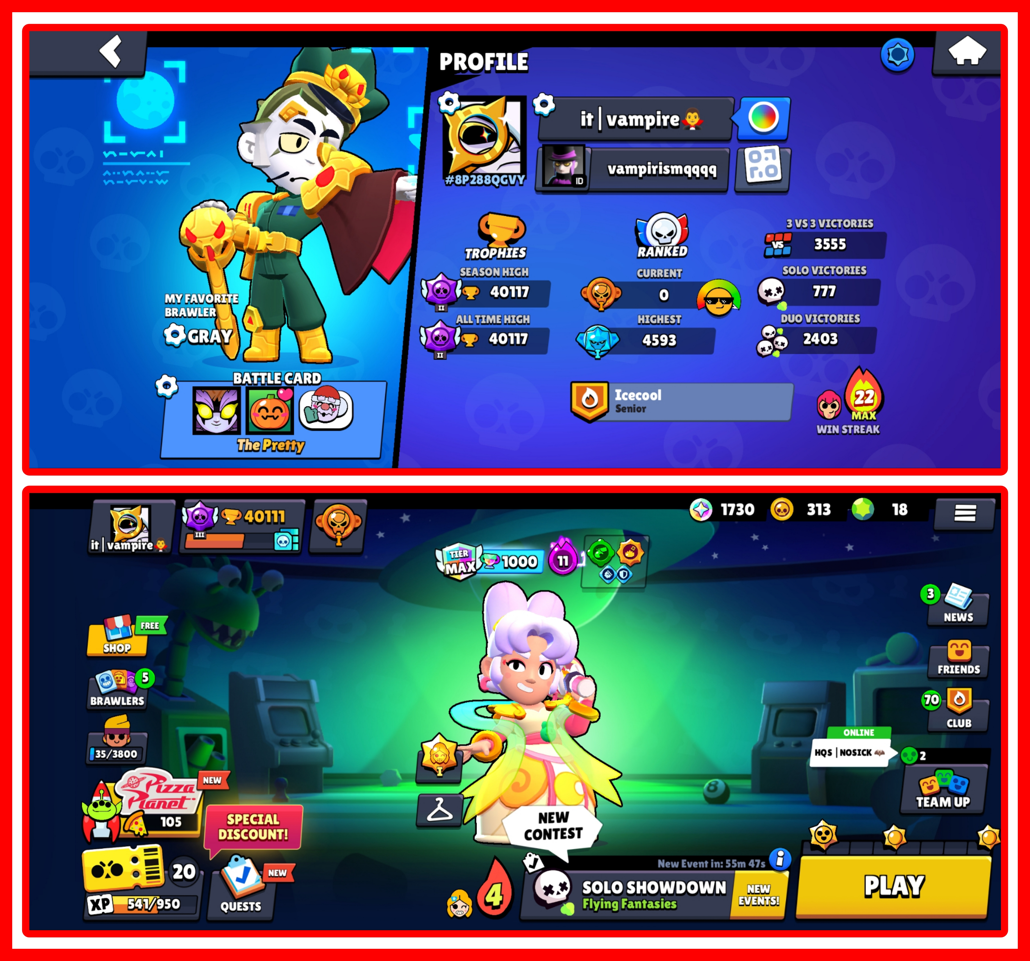 GRAB NOW🍬40K TROPHIES 🏆 BRAWLERS 86/91😍🔥 313 COINS 🪙 1730 BLING 🤩 9 HYPERCHARGED ☠️ 15 MAX 🎁🚀 122 SKINS 💗🔥 INSTANT DELIVERY 💯☑️ BOTH IOS AND ANDROID ☑️🤝#fz