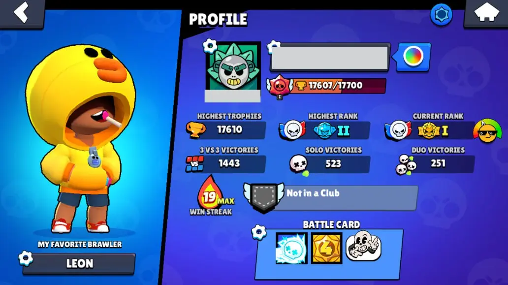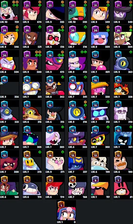 ๐ 49 Brawlers ๐ 17.607 Trophies ๐ 51 Skins ๐ 2 Legends ๐ 7 Mythics ๐ 21 Epics ๐ 1366 Gold ๐ 19 Gems ๐ 662 Blings ๐