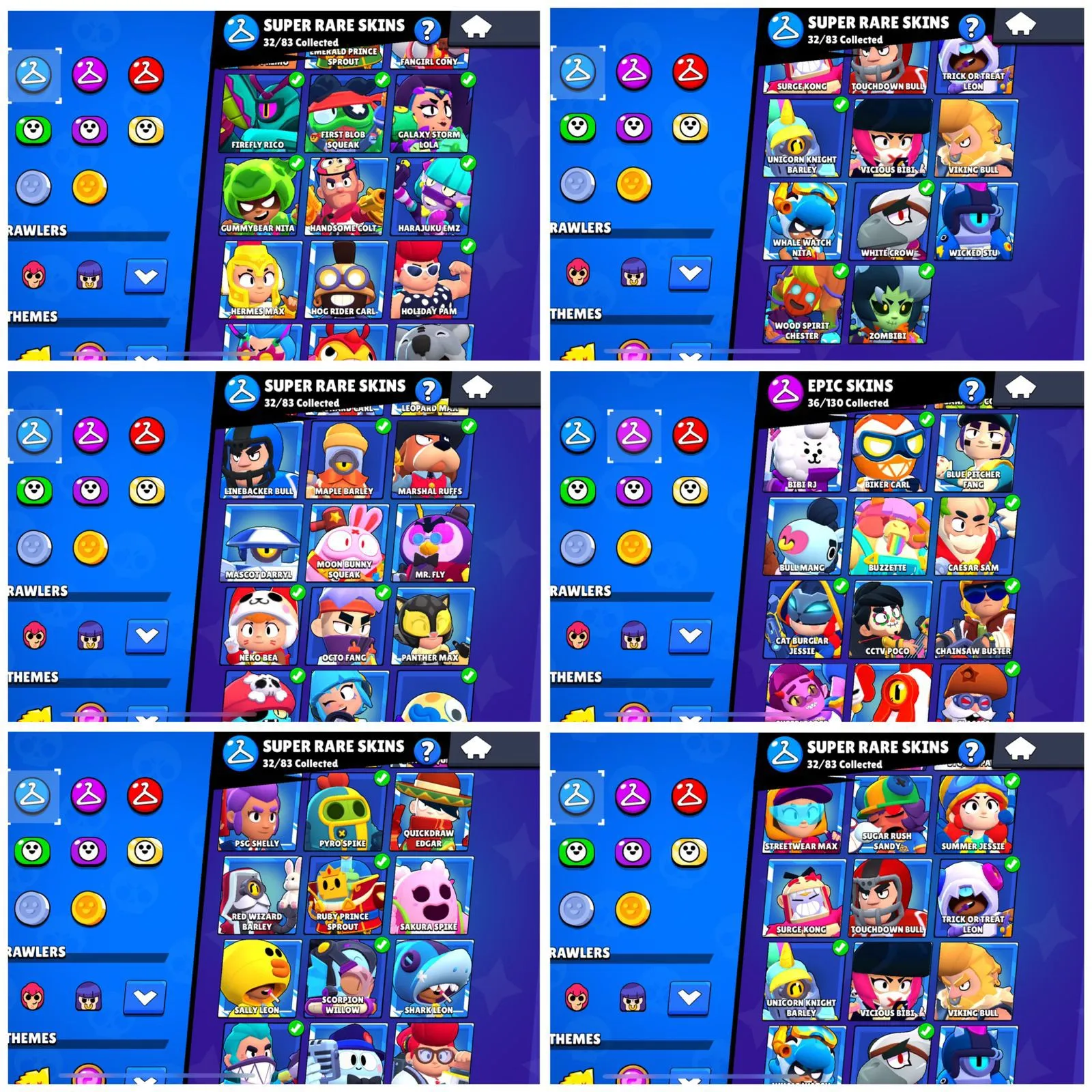 50K HIGHEST TROPHIES-76/79 BRAWLERS-47 MAX POWER(11 HYPERCHARGED)-36 EPIC SKINS-2 LEGENDARY-32 SUPER RARE-32 RARE-TRUE SILVER BUZZ-231 COLLECTOR PINS