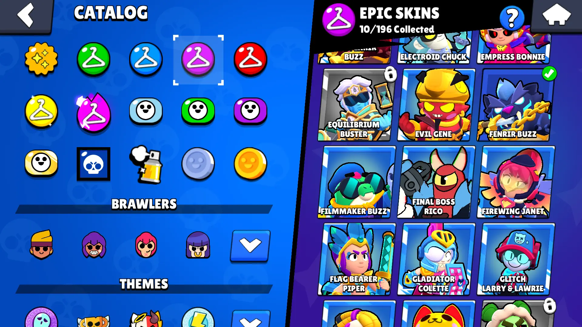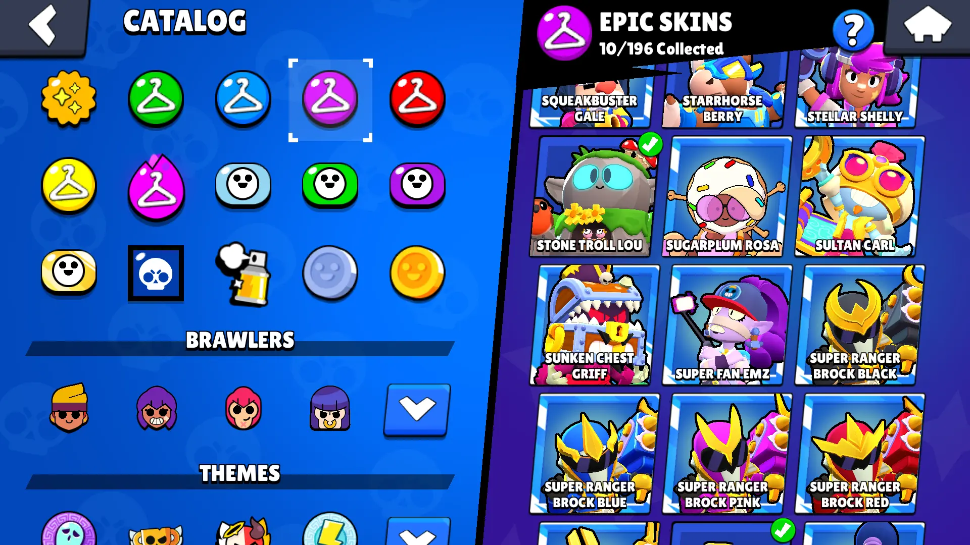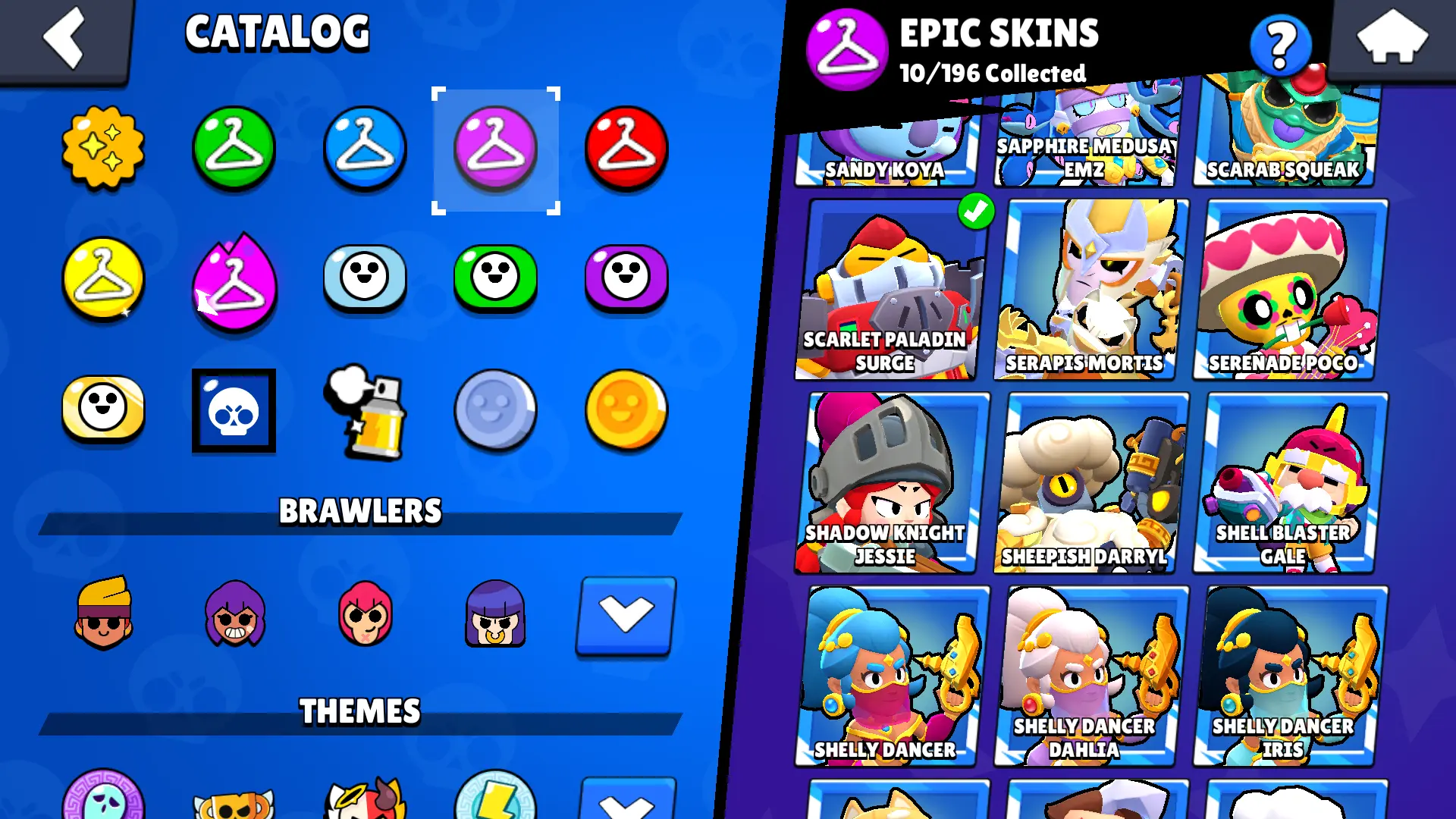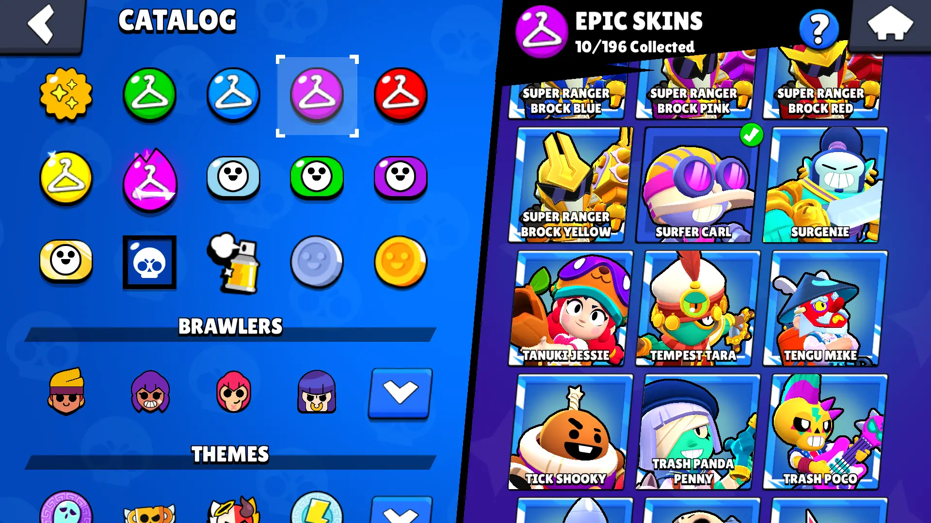 52 SKINS | 19089 TROPHIES | BORN BAD BUZZ | GODZILLA BUZZ | SURFER CARL | WARRIOR BO | STARRHORSE BERRY | STONE TROLL LOU | FENRIR BUZZ | SCARLET PALADIN SURGE | SQUAD BUSTER SHELLY | VAMPRIMO | SAM THE TEDDY | GUNSLINGER COLT | OUTLAW COLT | 69 BRAWLERS