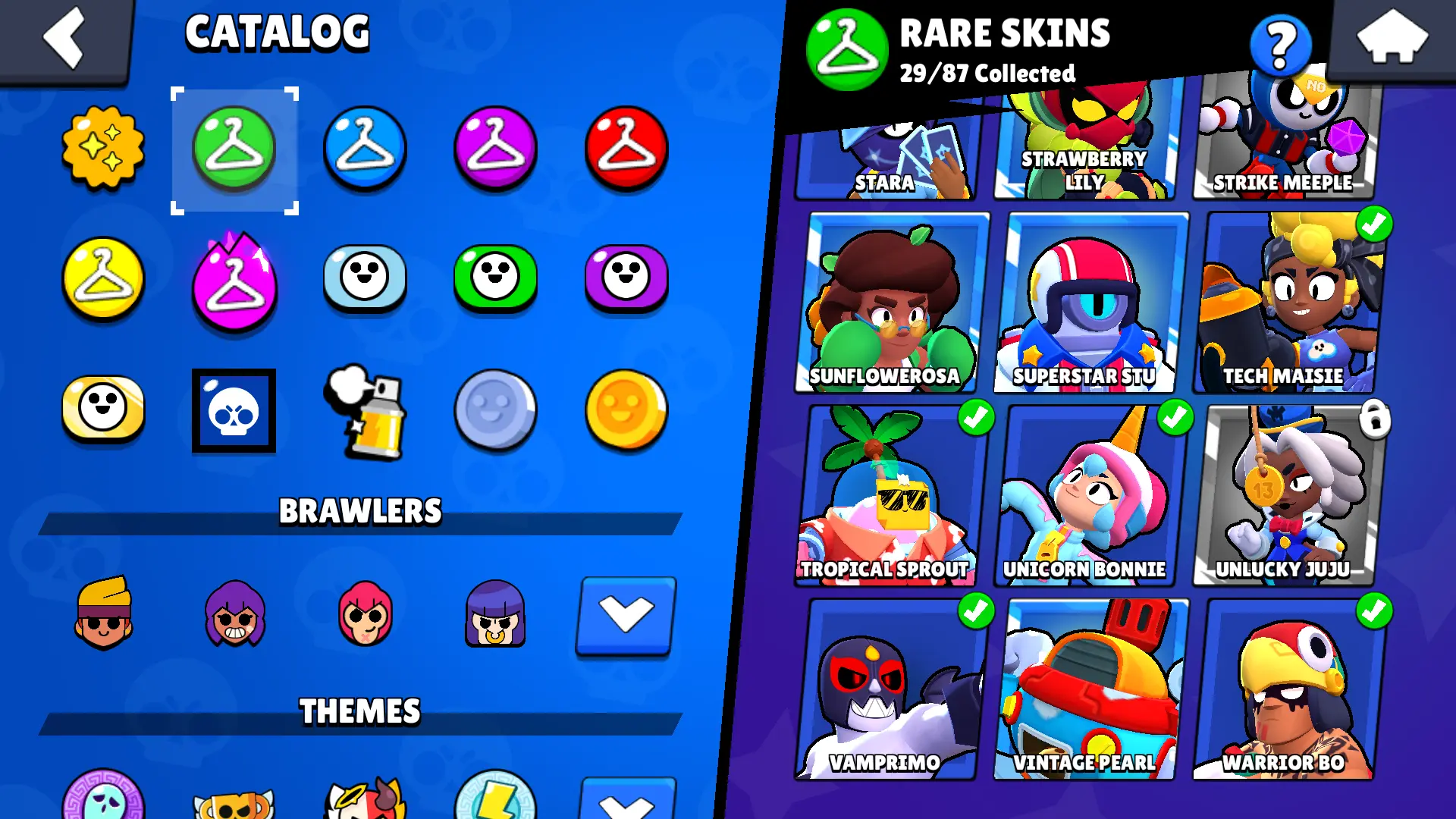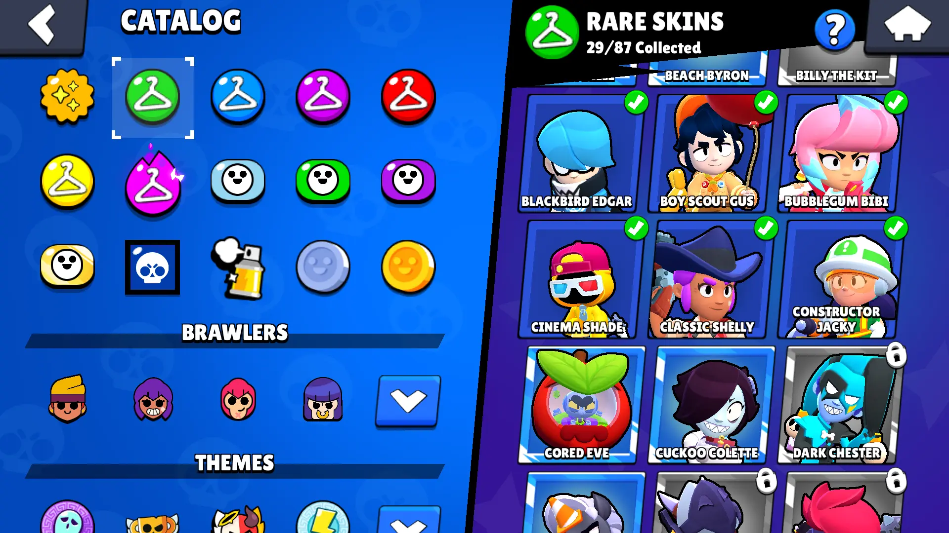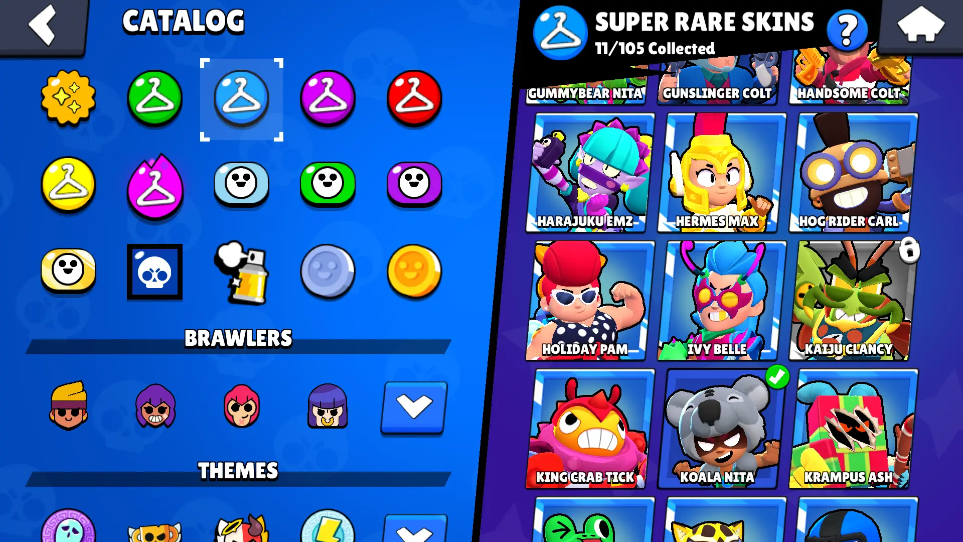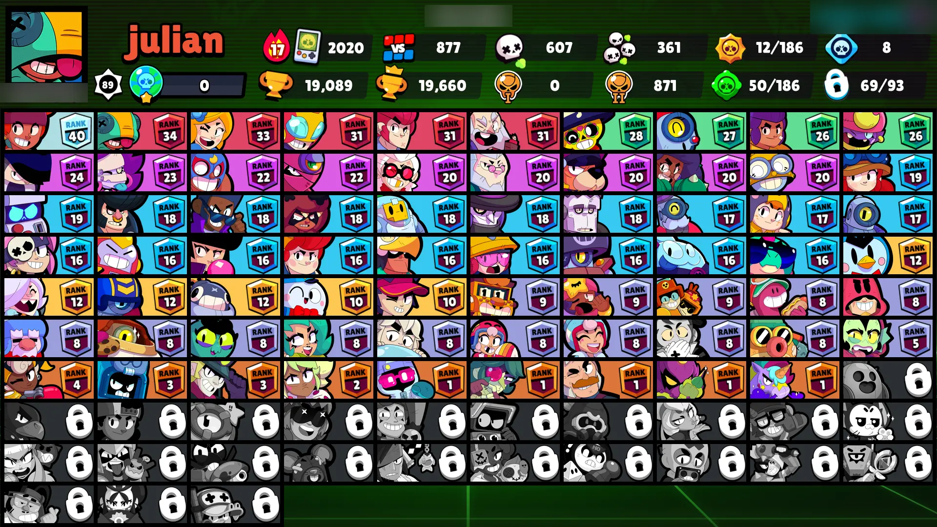 52 SKINS | 19089 TROPHIES | BORN BAD BUZZ | GODZILLA BUZZ | SURFER CARL | WARRIOR BO | STARRHORSE BERRY | STONE TROLL LOU | FENRIR BUZZ | SCARLET PALADIN SURGE | SQUAD BUSTER SHELLY | VAMPRIMO | SAM THE TEDDY | GUNSLINGER COLT | OUTLAW COLT | 69 BRAWLERS