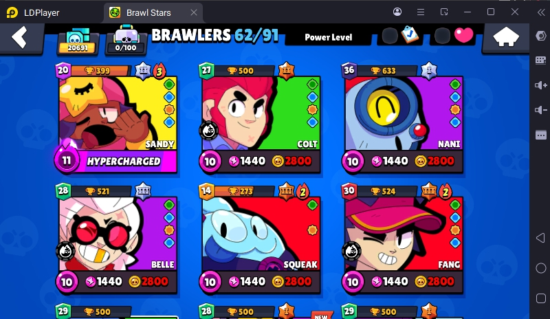 64 SKINS 🩵 20.619 TROPHIES 🏆 62 BRAWLERS 🧸 1 HYPERCHARGED 🍒 1 MAX BRAWLERS ⭐ DARK ANGEL COLT 🩵 DRAGOON BELLE 🩵 EL REY PRIMO 🩵 MOLDY MIKE 🩵 BELL NANI