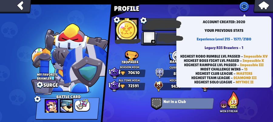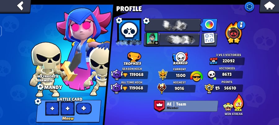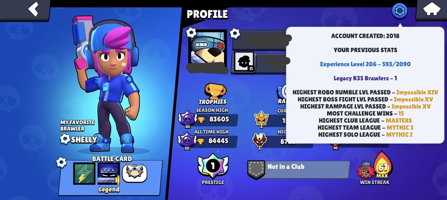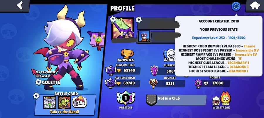 71k Trophy 🌟Brawl Pass : ✅🌟All Brawlers🌟7x New Mythic 🌟43x Hypercharge🌟48x Maxed🌟340+ Skins🌟Solar Fame 1🌟White Werewolf Leon🌟Rarest Antivirus 8-Bit🌟640+ Collector's pin🌟11x Titles