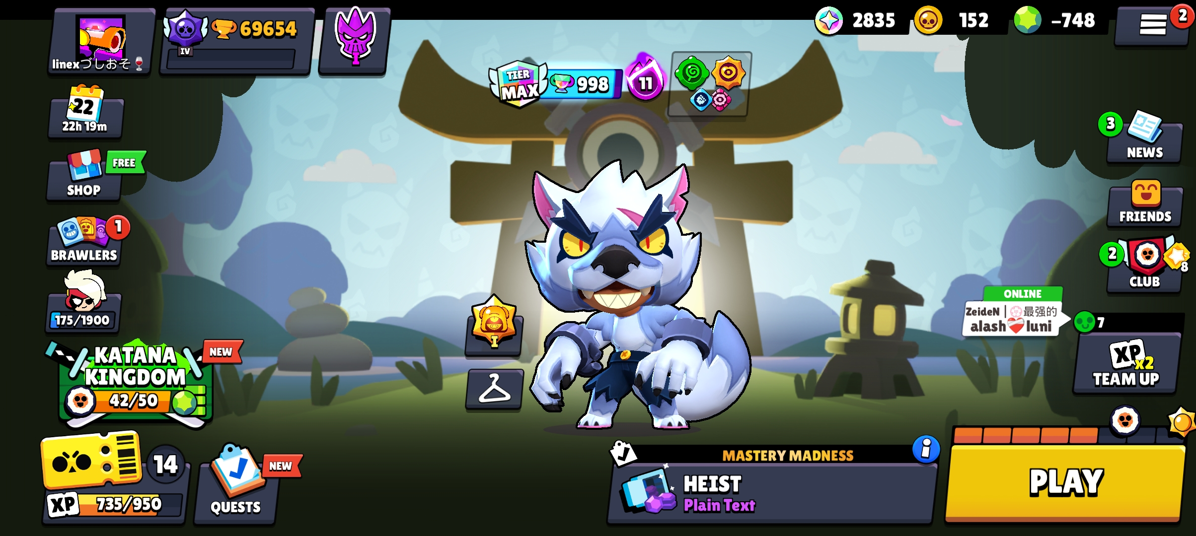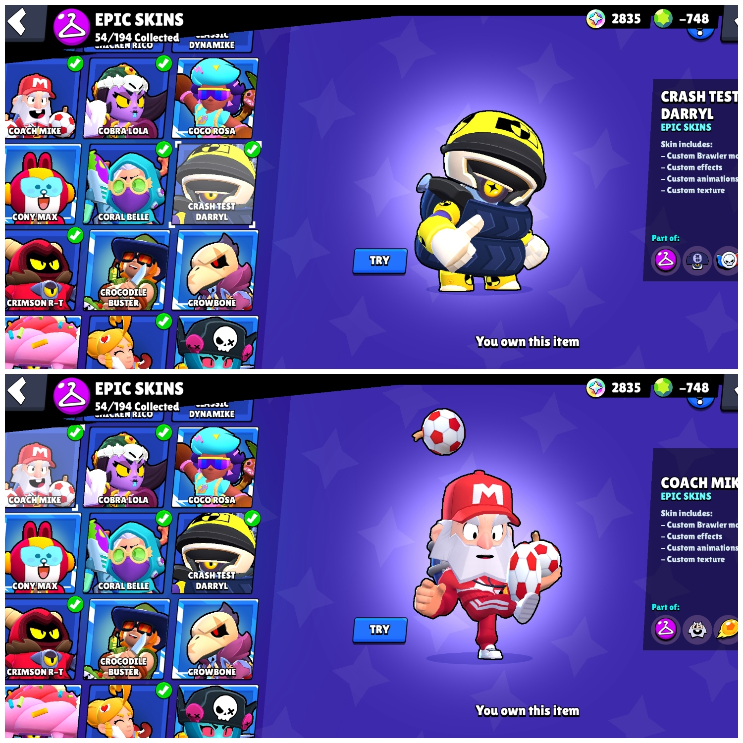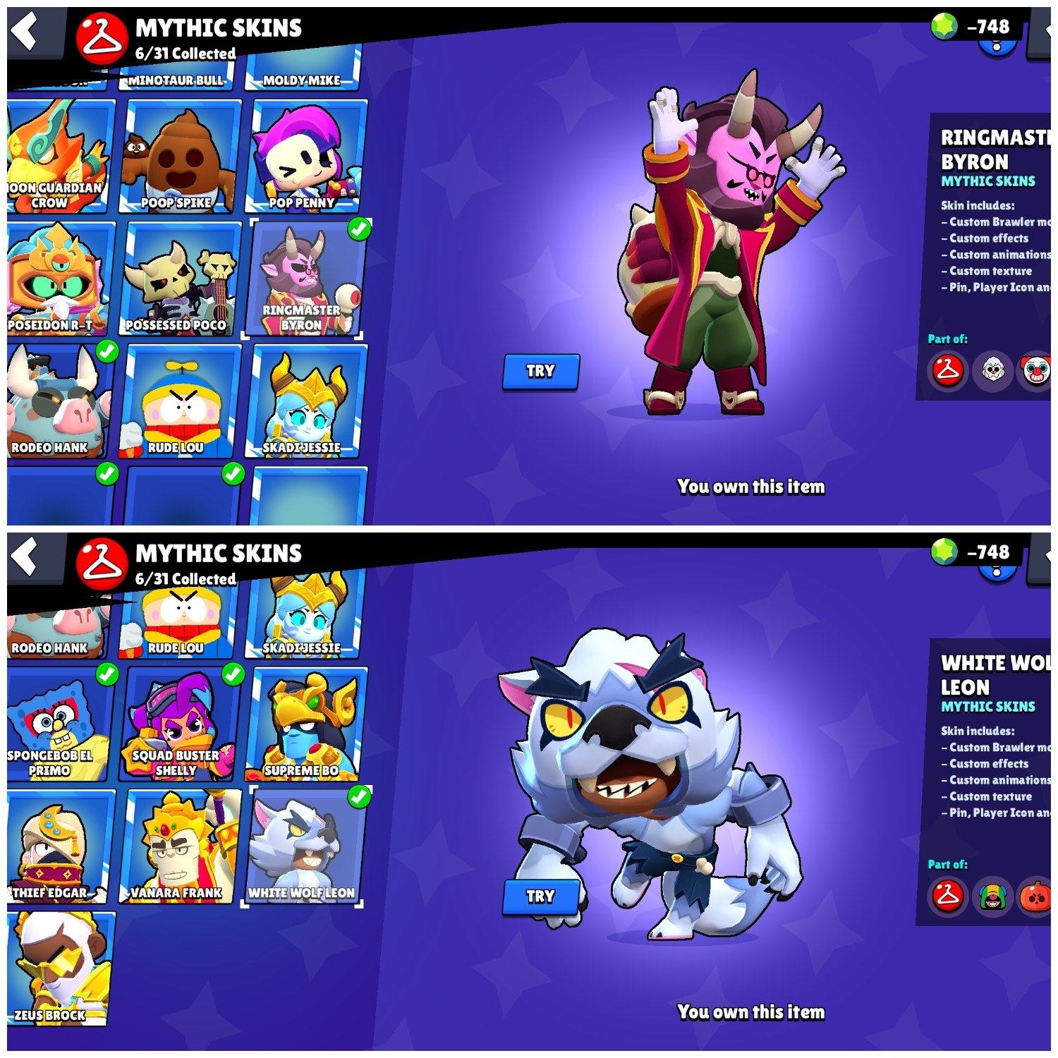 👑 Blue King Frank 🎭 Trixie Colette 🐺 White Wolf Leon 💪 59 Maxed 🌀 27 Hypercharges 🎨 180 OG Skins 🏆 69K Cups 🌌 Saturnian Fame 1 💎 -748 Gems (Negative)