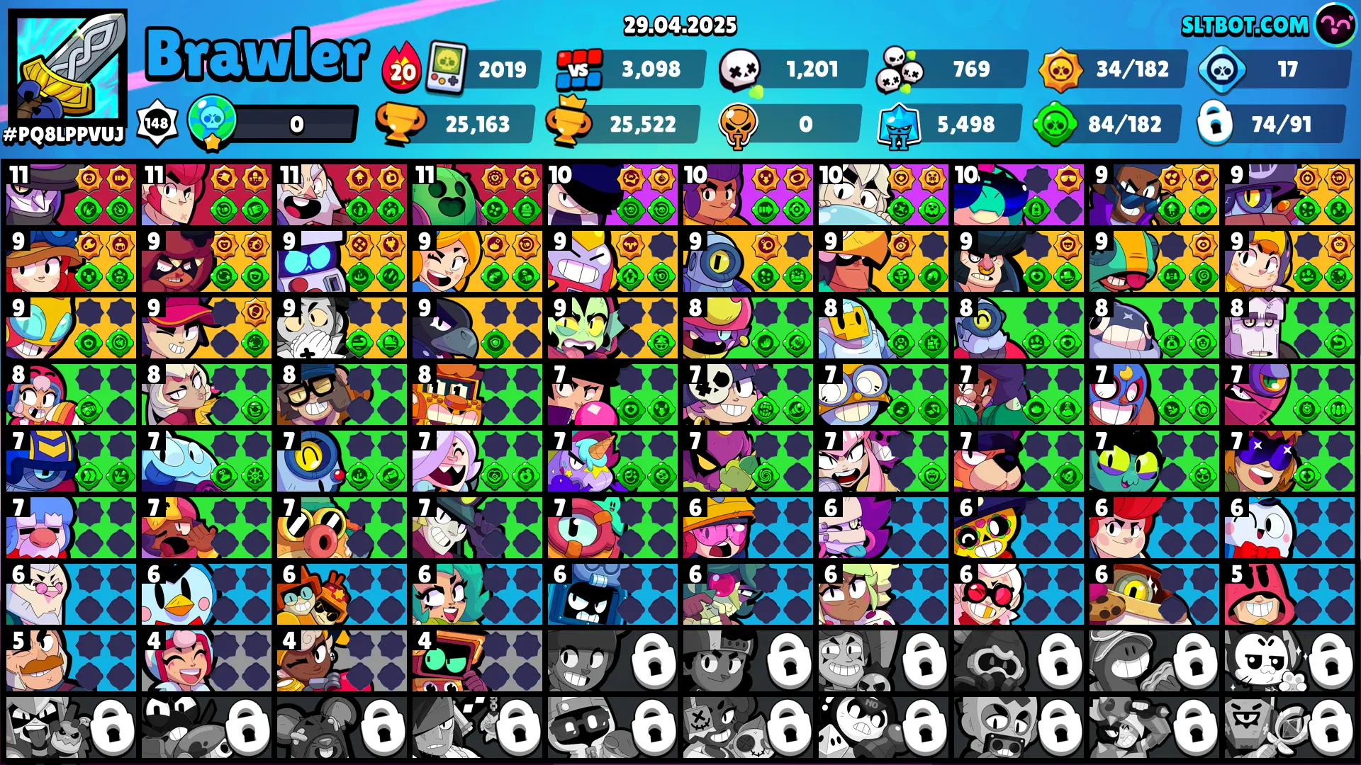 82 SKINS 🩵 25.163 TROPHIES 🏆 74 BRAWLERS 🧸 2 HYPERCHARGED 🩸 4 MAX BRAWLERS 🩷 DARK ANGEL COLT 🩵 EL REY PRIMO 🩵 SUPER RANGER BROCK BLUE 🩵 RED DRAGON JESSIE 🩵 SANTA MIKE 🩵 RICOCHET 🎀