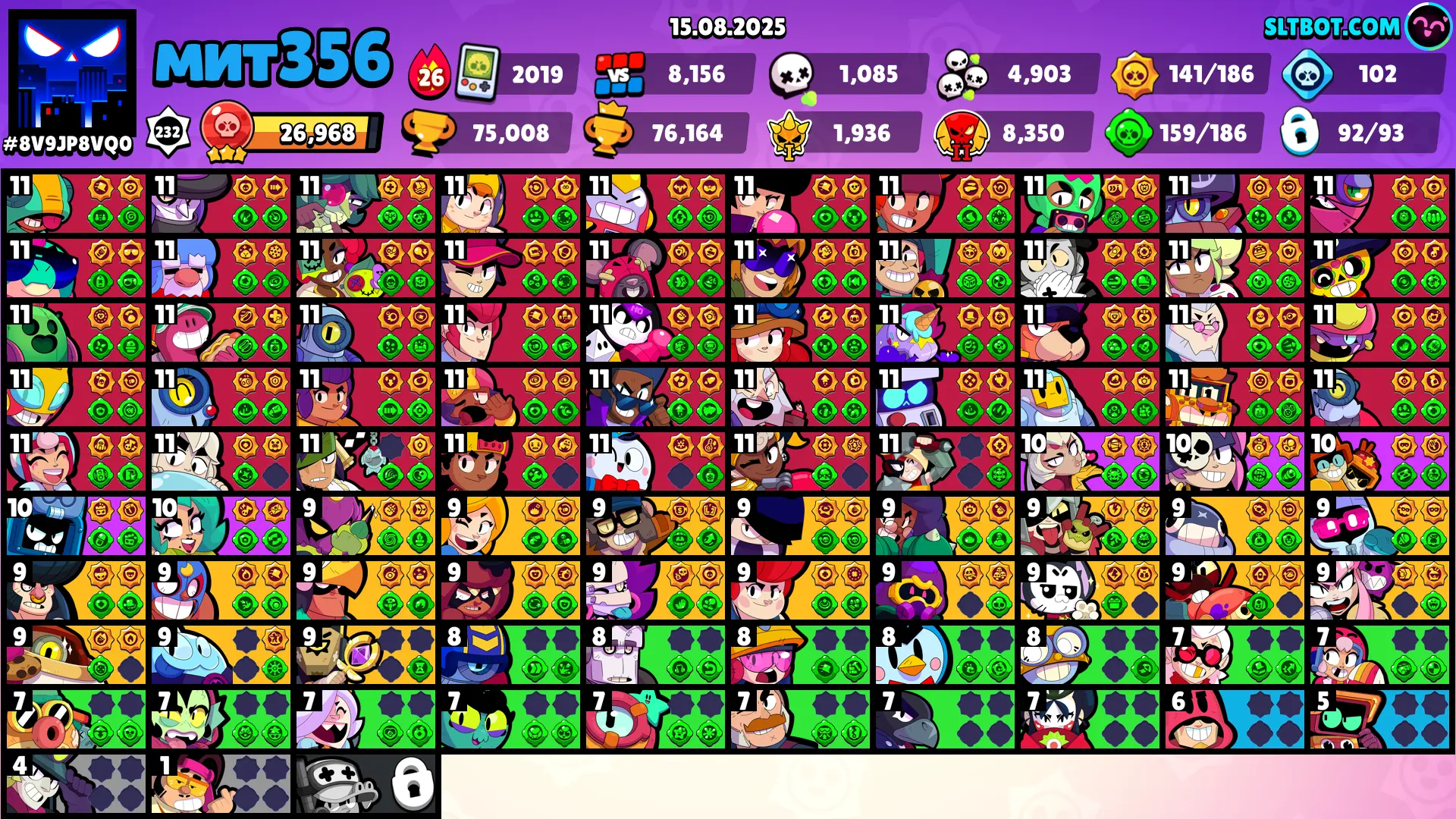 MERCHANT GALE ⭐ 244 SKINS ⭐ 75.000 TROPHY ⭐ 92 BRAWLERS ⭐ 46 MAX ⭐ 39 HYPERCHARGED ⭐ CORSAIR COLT ⭐ MECHA MORTIS ⭐ CHAINSAW BUSTER ⭐ DIY SURGE ⭐ KABOCHA FANG ⭐ SPIKE ⭐ LEGENDARY ⭐ LEON