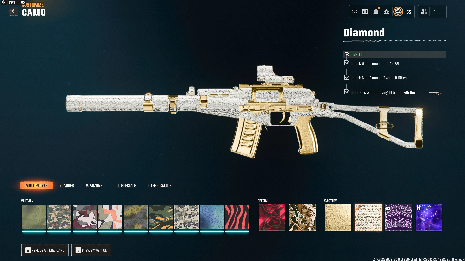 🚀 20 Diamond Camos 🐉 260 Camos 🎯 Level 55 + 50 Wins 💎 17 Operators 🎮 Ranked Ready 🌟 Prestige-Ready 🔒 Full Access 🔗 Linkable: Steam, Battle.net, PSN, Xbox 🕹️ BO6 #L9F4K2