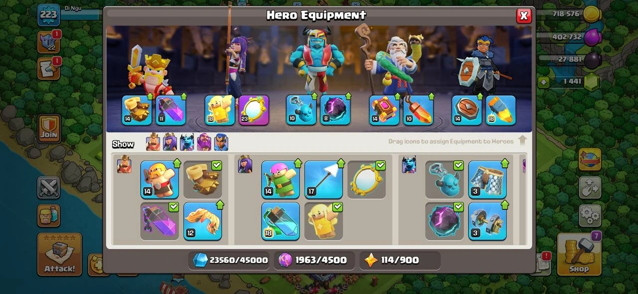 13 OG Skin + Builder Apprentice Max 🛑TH 16 {Ready to war} 🛑EQUIPMENT 🛑 90-92-55-61-38 HEROES 🛑 223 XP LVL 🛑 OP MAGIC ITEMS 🛑 1000 GEMS RENAME 🛑OP HEROES SKIN 🛑 1097 WAR STAR 🛑 SUPER FAST INSTANT DELIVERY