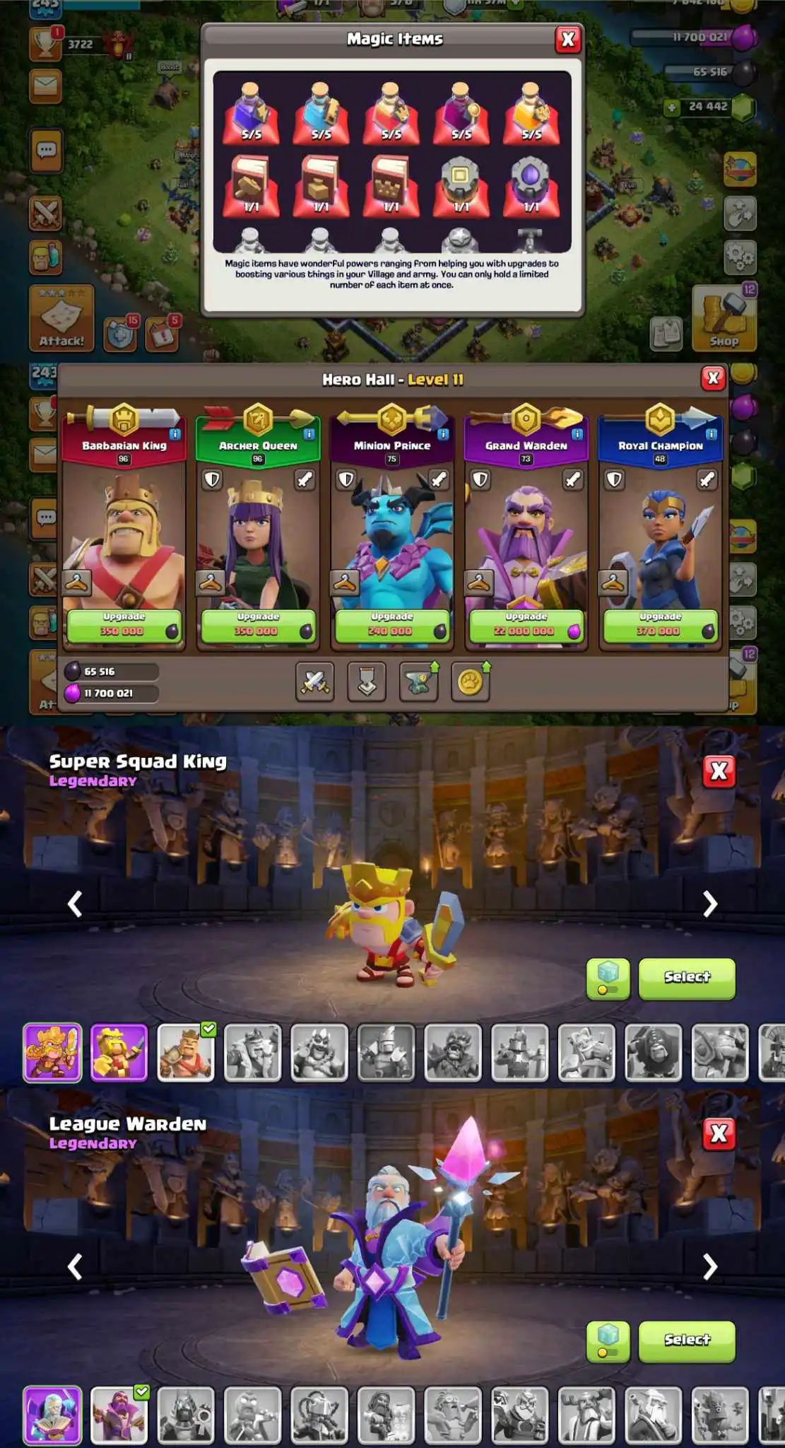 1705 | RARE | TH17 MAX ID | GEMS-24442 | WARDEN LEAGUE SKIN | HERO'S: 96-96-75-73-48 | 9x EPIC EQ | PURPLE WALL | 3 SKIN