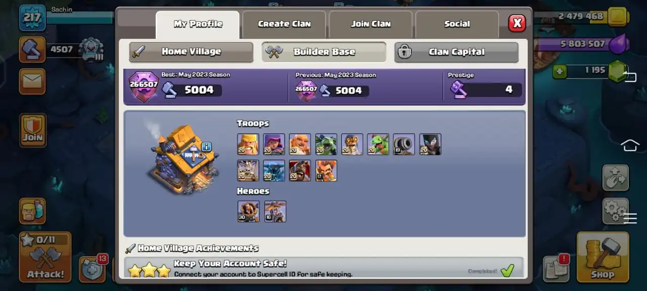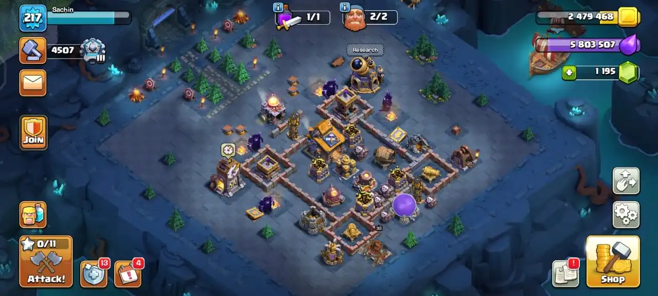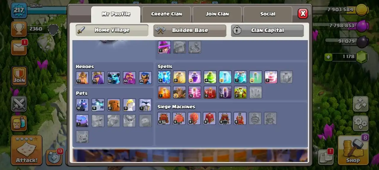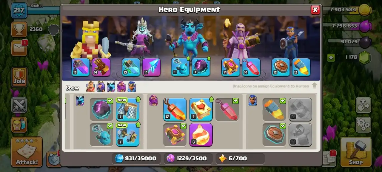 ✨ [2 HERO'S SKINS] TH15 🔥 XP 217 🧿 3 EPIC EQUIPMENTS 🛡️ MAX DEFANCE & ARMY 🏰 OVERPOWER BASE 💎 1178 GEMS ✨1500 NAME CHANGE ⚡ SEMI HERO'S 🥶 HEROES:- BK73 AQ75 MP51 GW55 RC26