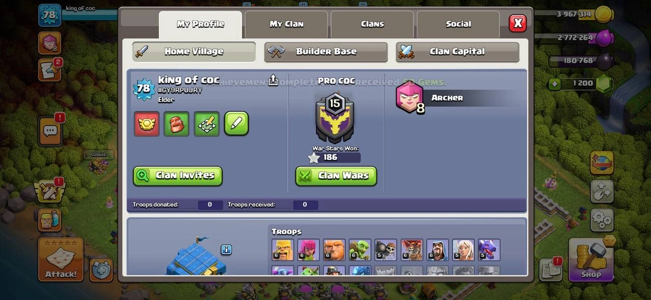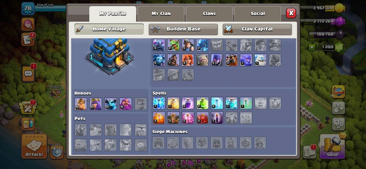 {8 EPIC EQUIPMENT}🍀TH 12  HIGH HEROES ⭐ WHITE WALLS 💫40-43-23-15 HEROES 🏅78 XP LVL ♾️ OP MAGIC ITEMS ❤🔥LABORATORY ⚡️ CWL MEDALS 💗 FREE RENAME ✨OP HEROES SKIN 💎 186 WAR STAR ⭐ SUPER FAST INSTANT DELIVERY