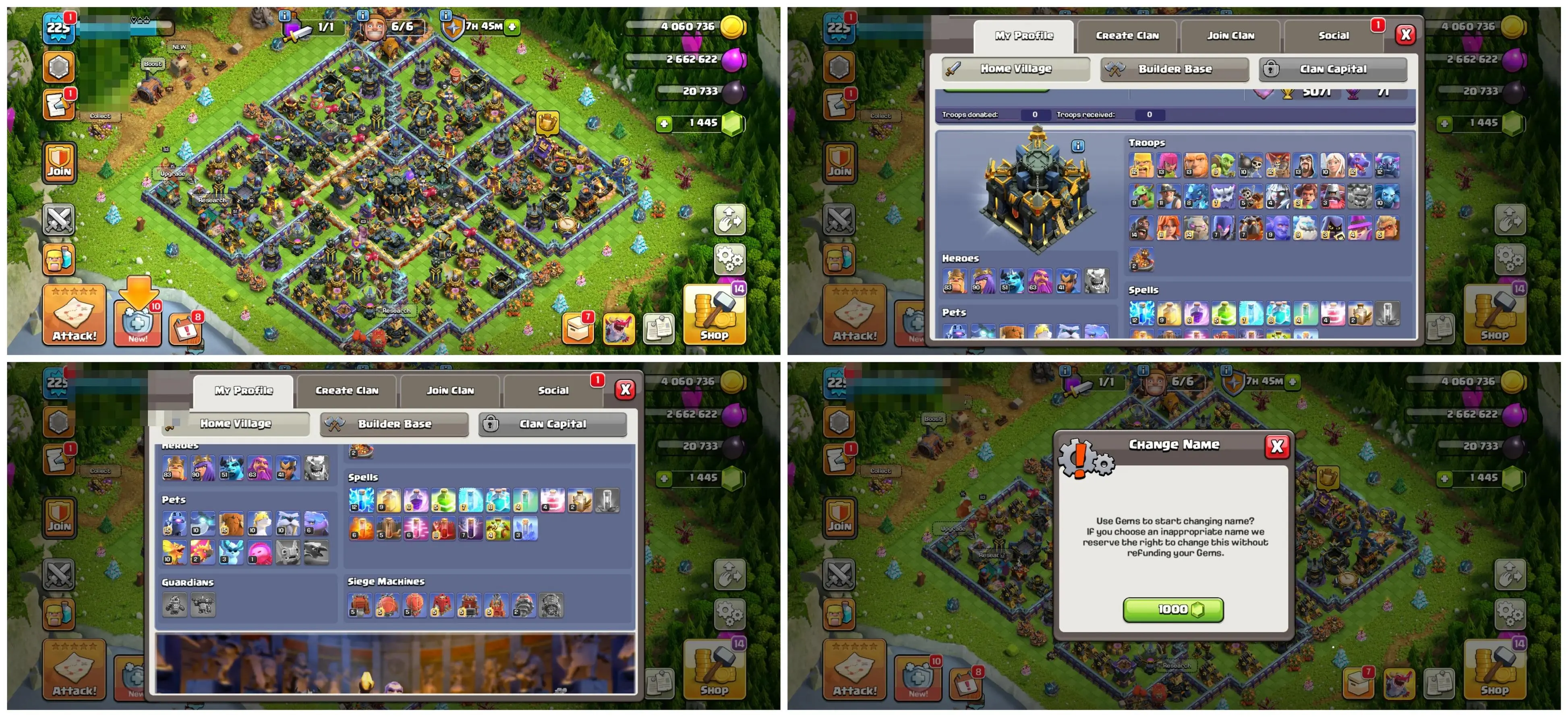 🏰 TH17 🏗️ Semi Max | 💎 1,445 Gems | 📈 Lvl 225 | 🦸♂️ Heroes 83/90/51/63/41 | 👕 3 Skins | ⚔️ 6 Epic Eq. | 💰 Nc 1,000 | 📱 Android/iOS | 🆔 M3771 !MKG016855