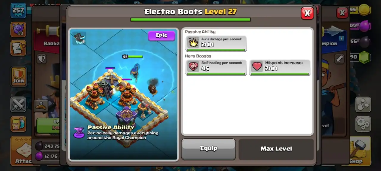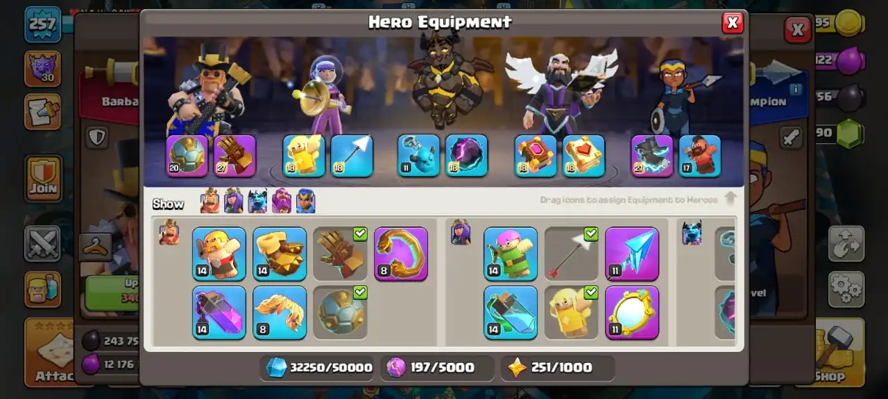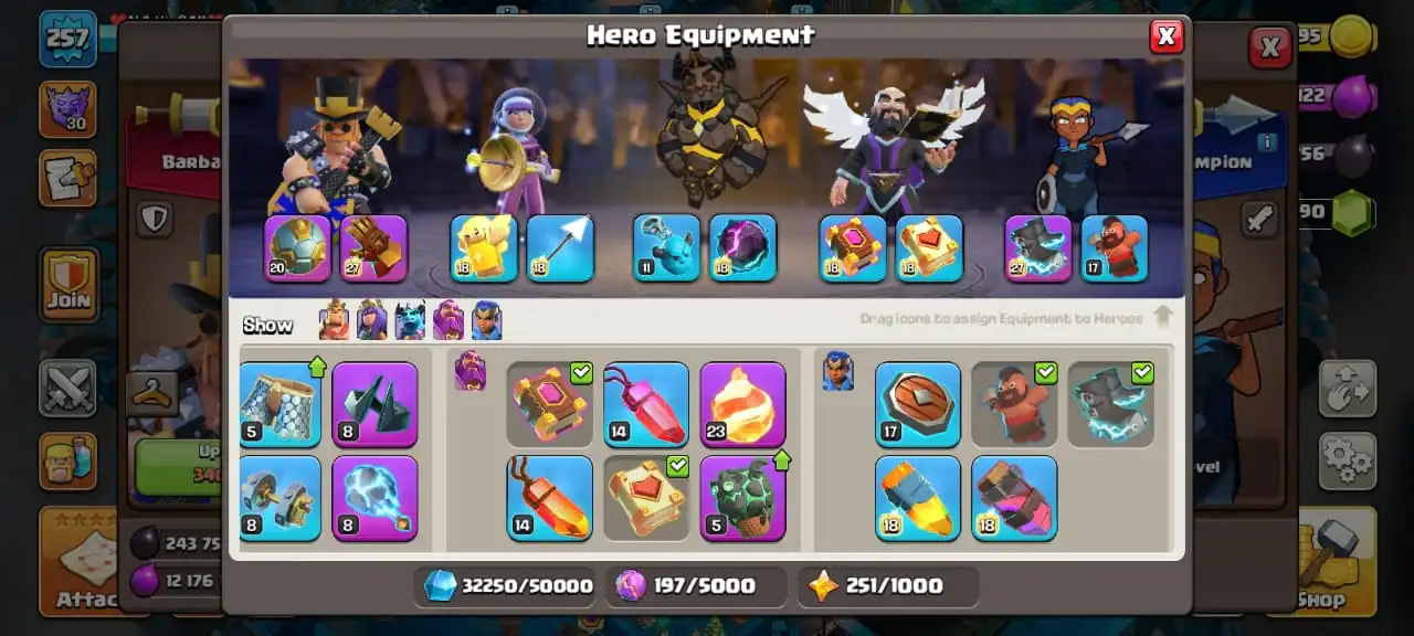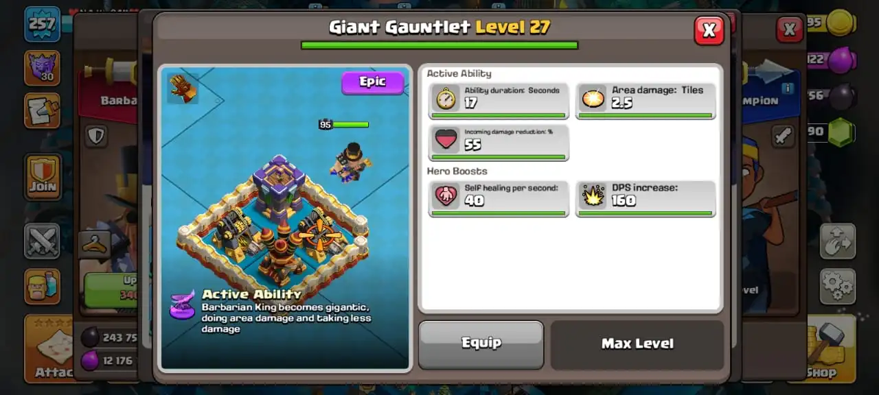 Big sale☠️max giant gauntlet and electro boots✅TH 17 ready to war🔥high heroes level 95/95/70/71/50☠️10 epic equipment⚒️6 builder’s💎6K gems✅5 scenery and 25 heroes skin