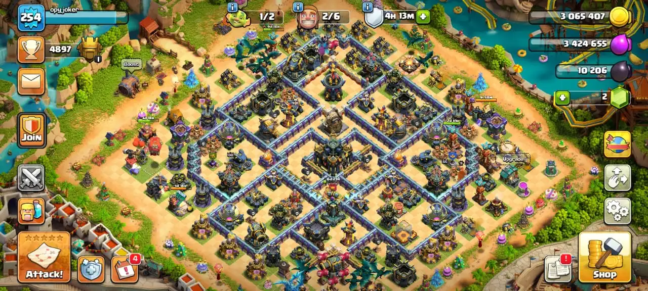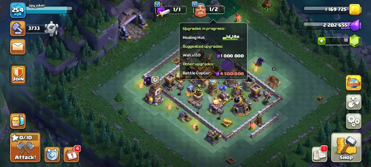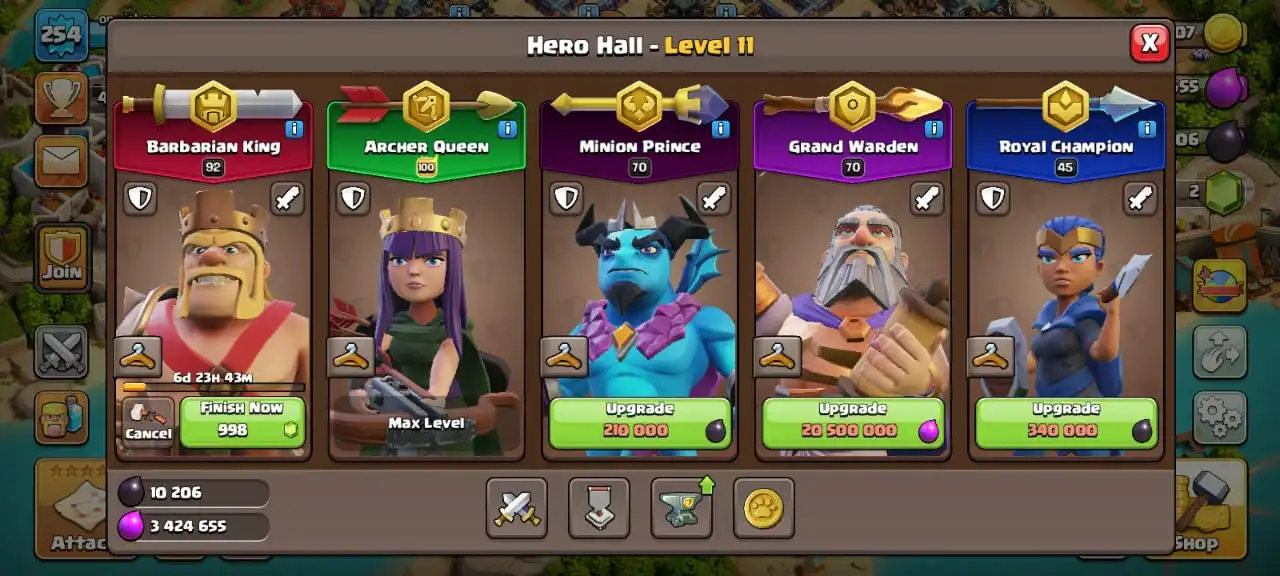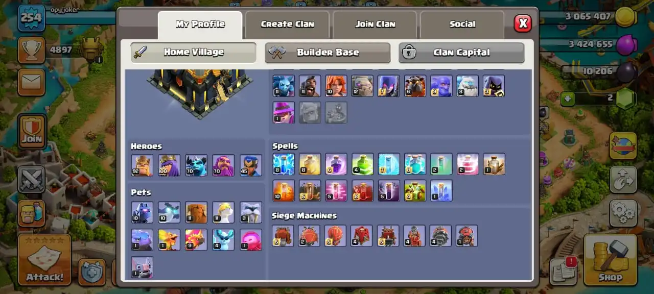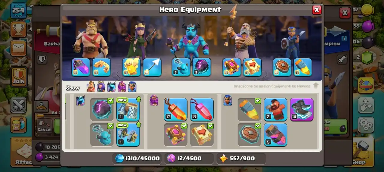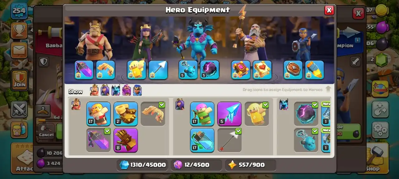 Big sale🔥TH 17 almost max🔥high heroes level 92/100/70/70/45☠️3 epic equipment⚒️max builder base✅free name change✅2 scenery and 4 heroes skin