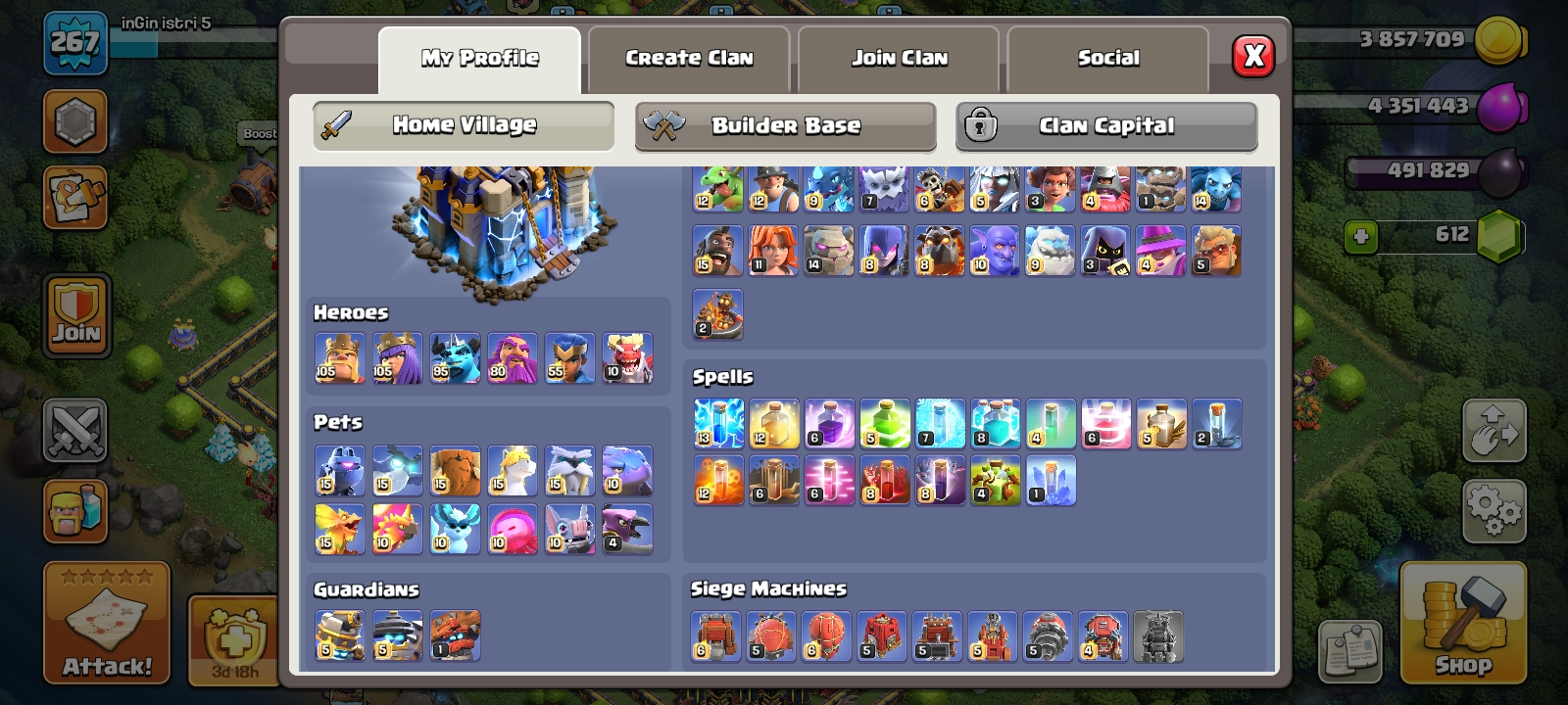 Big sale✅TH 18 almoast max🔥max heroes🔥max pets🔥max guardians☠️4 max epic equipment⚒️6 builder’s✅9 heroes skin