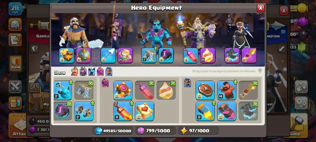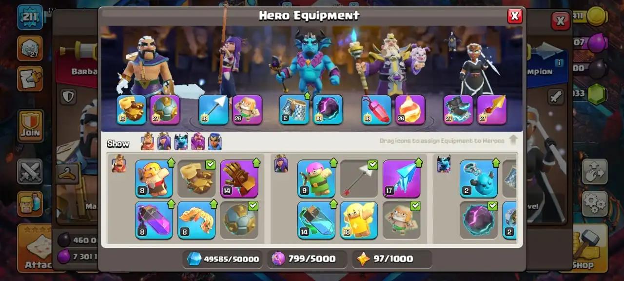 Cheap☠️3 max epic equipment🔥TH 17 almost max🔥max heroes level✅3 scenery and 11 heroes skin⚒️6 builder’s