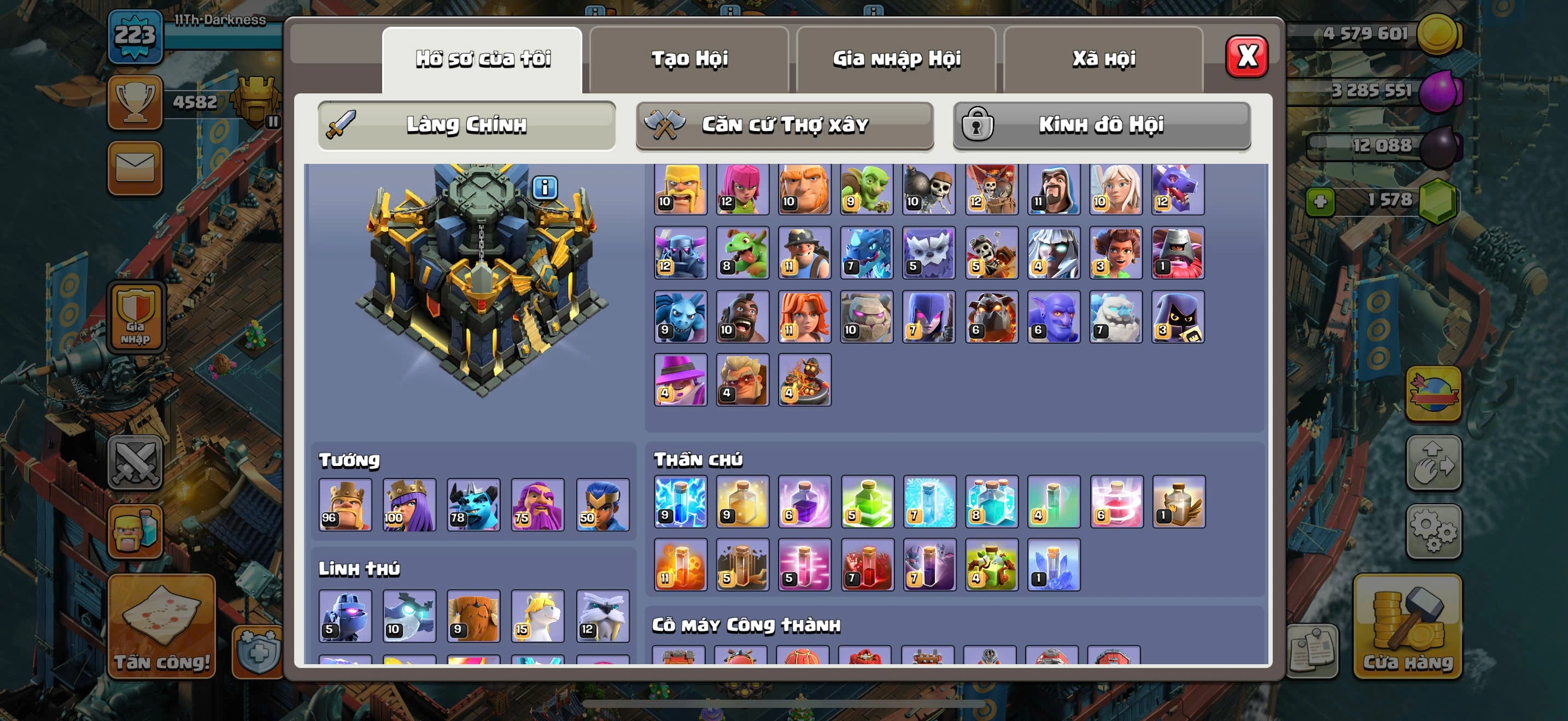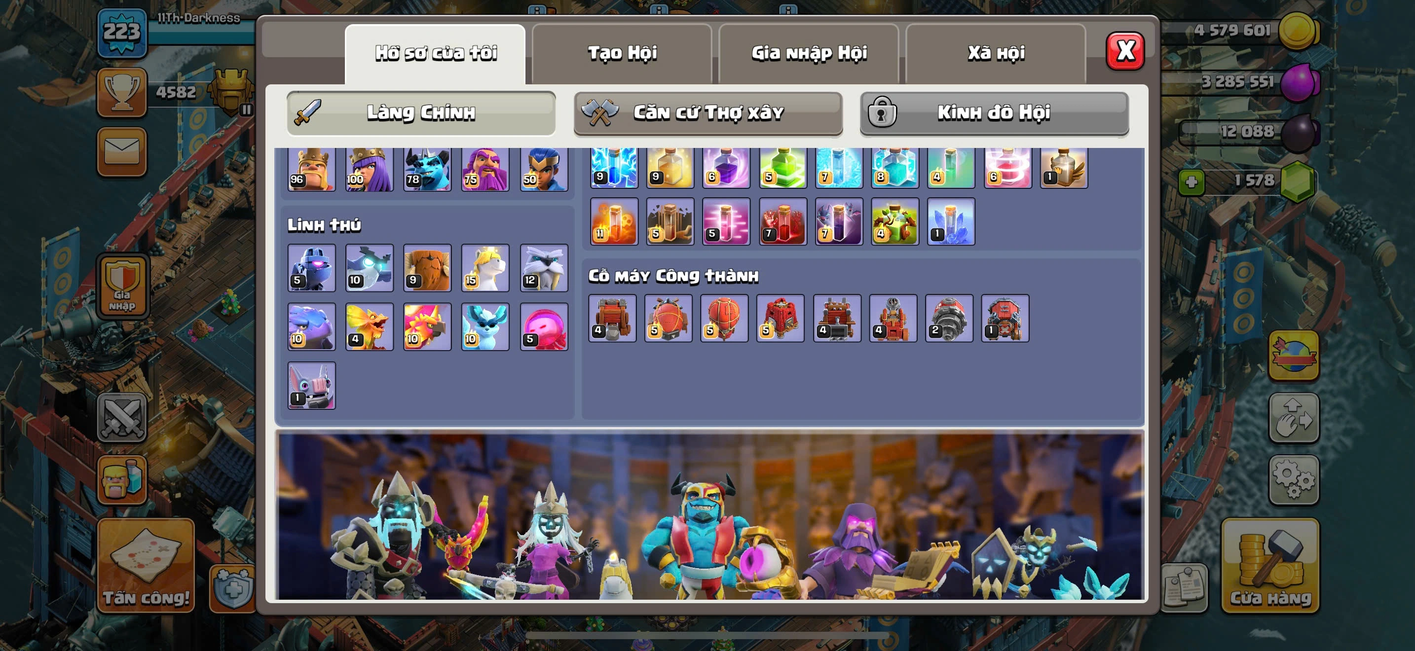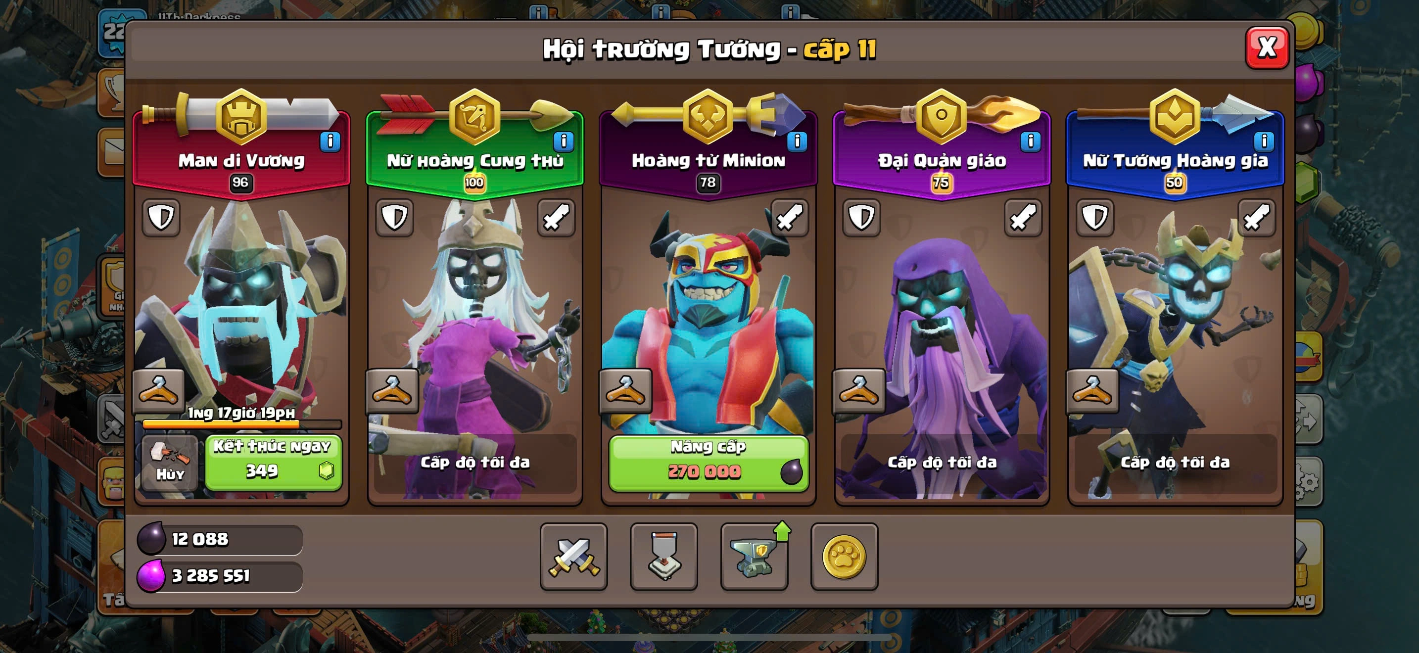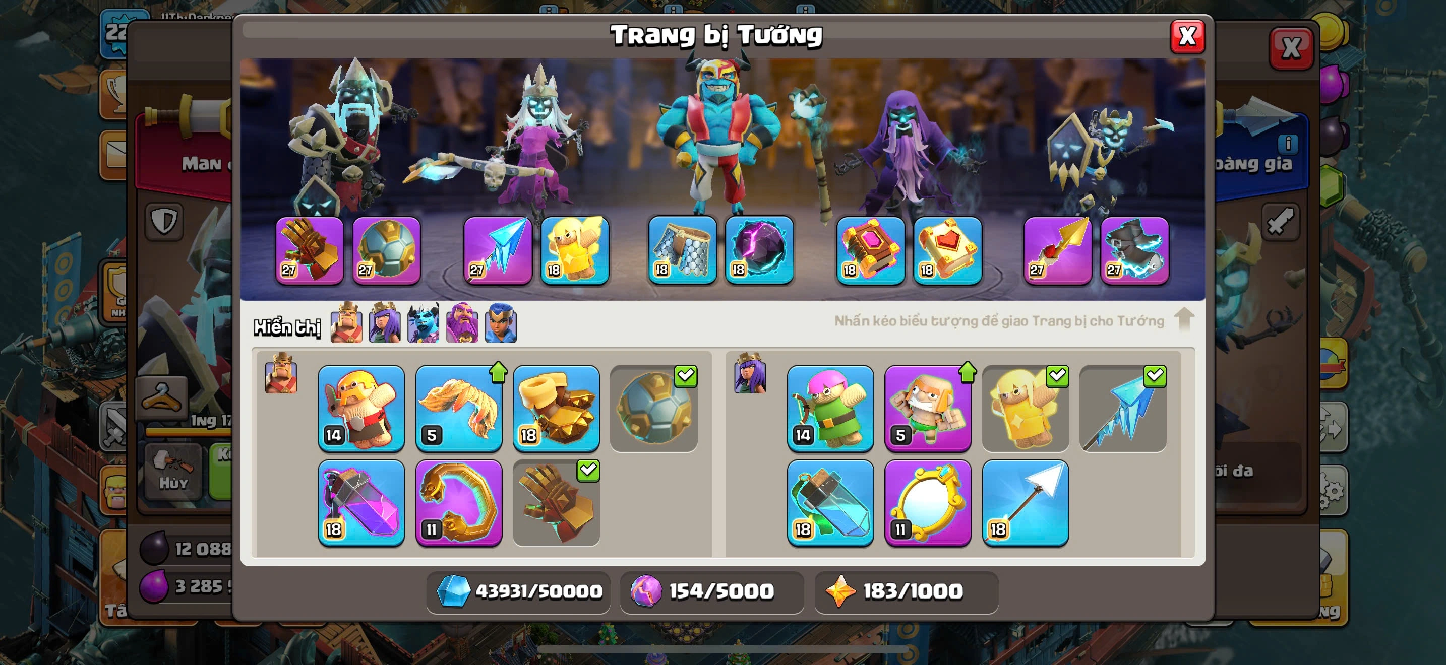 CHEAPEST TH17 MAX WALL-MAX 3 HEROES-MAX FULL EQUIPMENTS-MANY BEAUTIFUL SKINS-3 SCENERY-NAME CHANGE 1500-1500 GEMS-2209