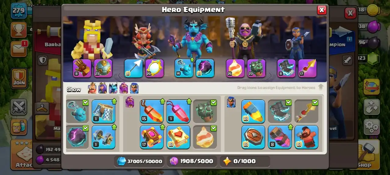 Cheap🔥TH 17 almost max🔥max heroes🔥max pets🔥max main troops☠️7 epic equipment⚒️max builder base✅cn 500 gems✅6 heroes skin