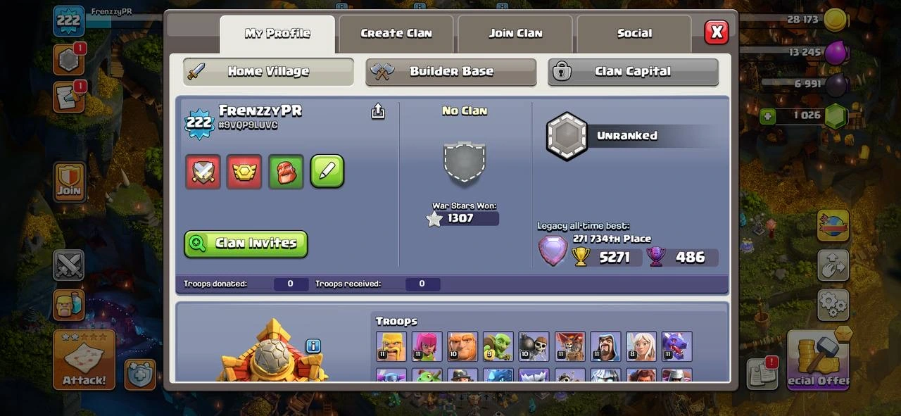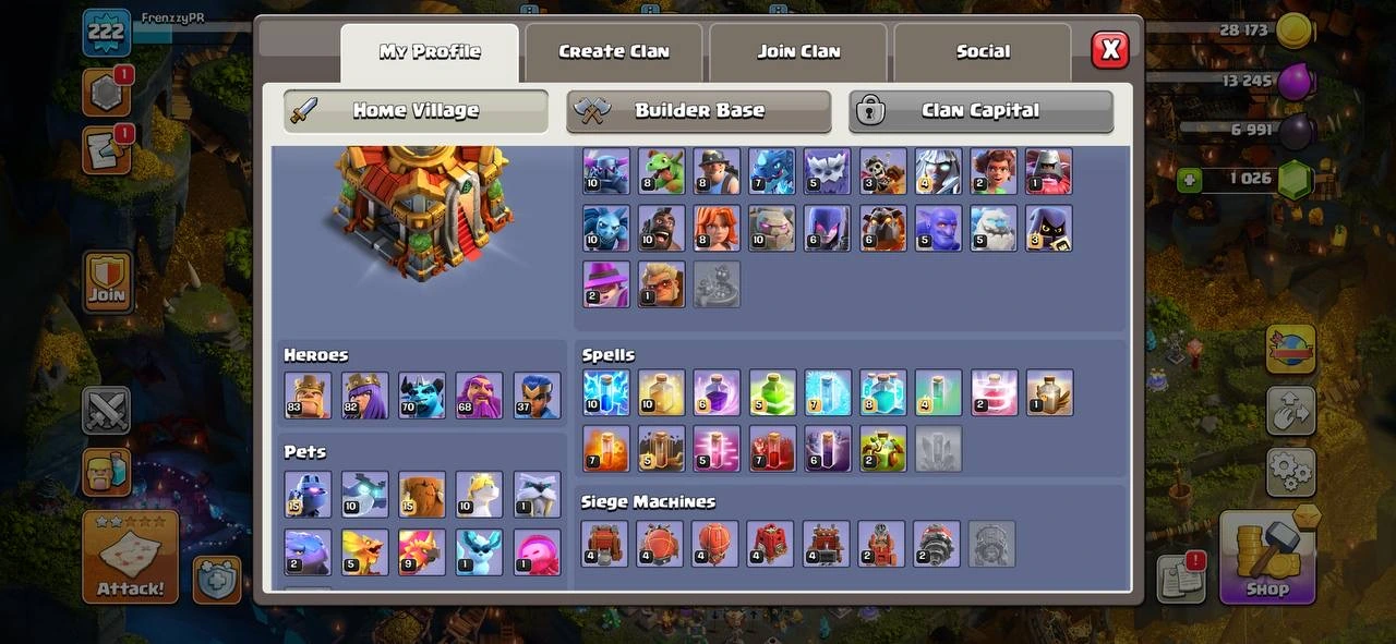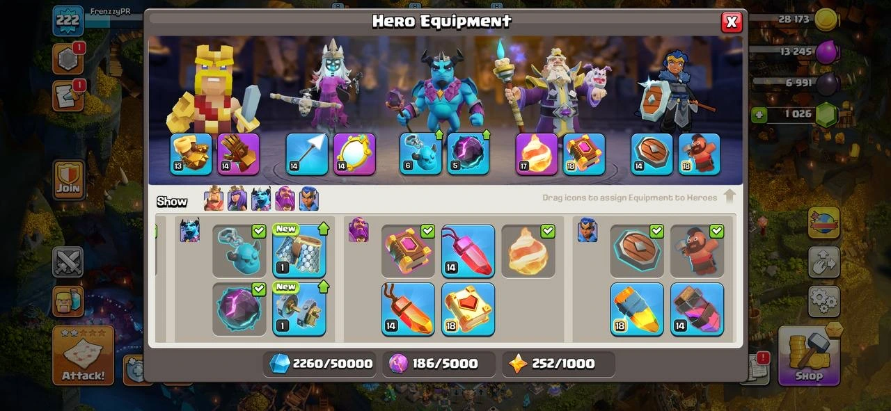 GOBLIN CAVES SCENERY {7 OG Skins } 🍀TH 16 {War League Acc }💫 TOP 3 LEGENDARY EQUIPMENT 💫 83-82-70-68-37 HEROES 🏅222 XP LVL ♾️ OP MAGIC ITEMS ❤🔥HIGH LABORATORY ⚡️ 115 CWL MEDALS 💗 1000 GEMS RENAME ✨OP HEROES SKIN 💎 1307 WAR STAR ⭐