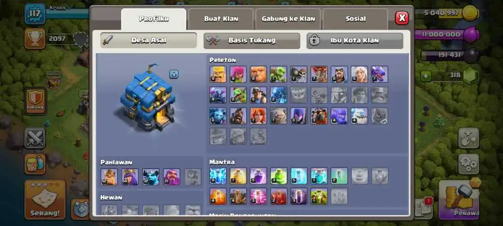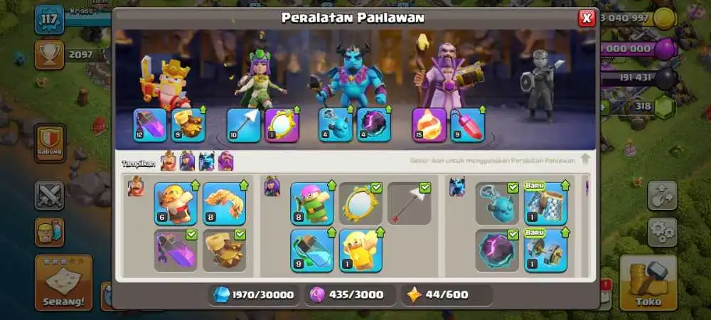 IT 418⚡TH 12 BLUE WALL AND 2 EPIC SKILS⚡LVL 117🛡KING 52🛡QUEEN 54🛡WARDEN 21🛡MANY MAGIC STUFF+MANY LEAGUAE POIN🛡SAFE ACCOUNT⚡