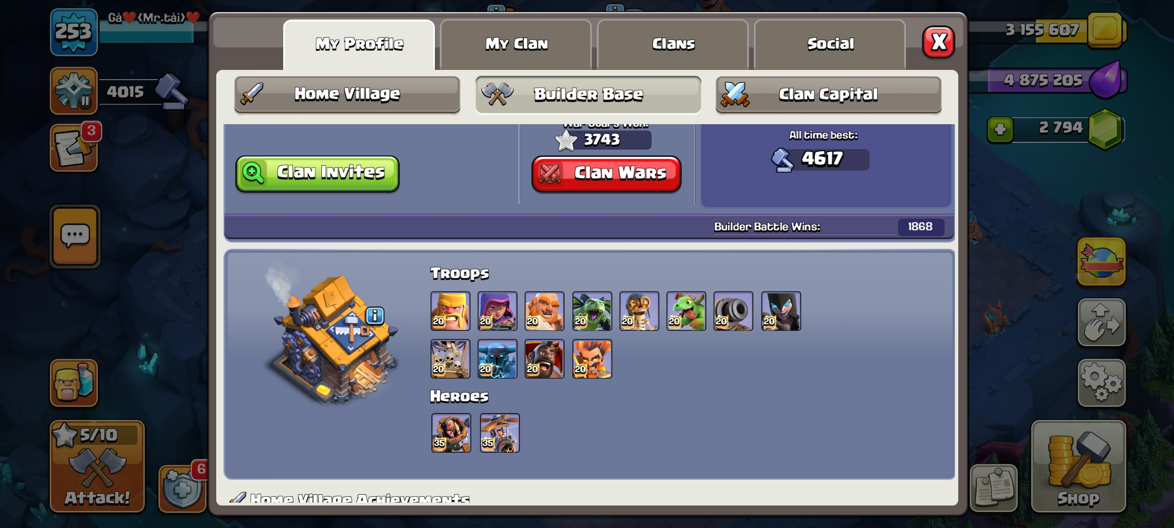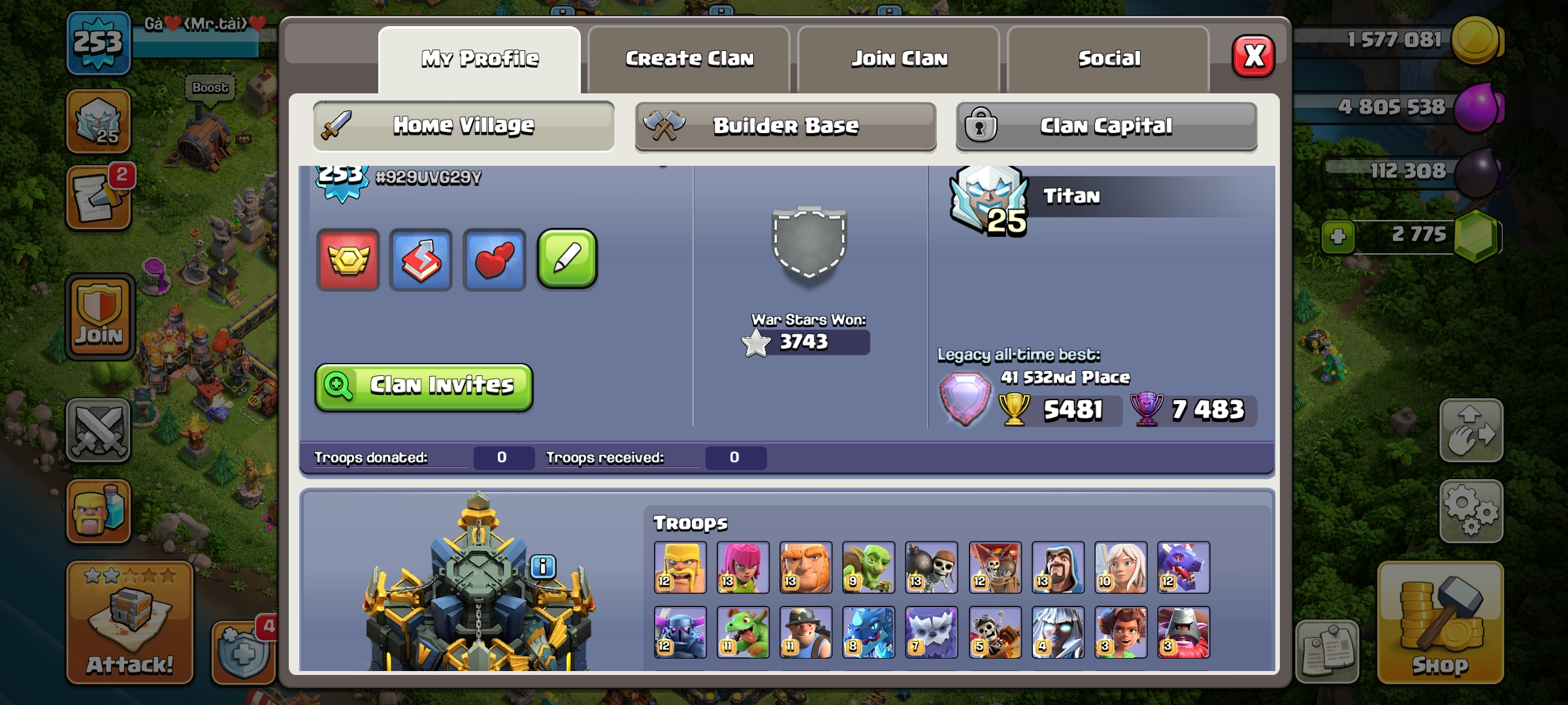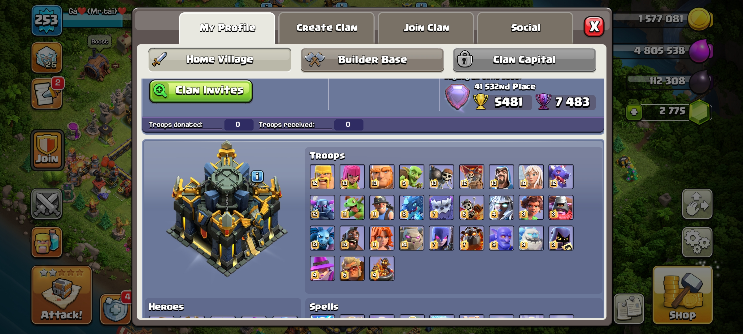 🌹 PREMIUM TH 17 MAX 🥀 5X HEROES MAXED ✨ 7 EPIC EQUIPMENT MAX 💫 RARE WAR ARENA SCENERY ⭐ NC 1K GEMS ❤️ LAB FULL MAX 🌕
