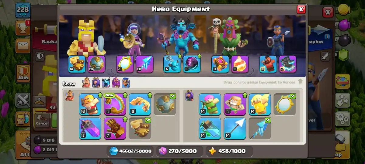 RARE [ GEMS 10 340 ]🔥TH 17 ALL MOST MAX🔥HEROES 89-89-71-68-50 FULL EPIC EQUIPMENT🔥WAR ARENA SCENERY🔥MAGIC & JUNGLE & PIXEL SCENERY🔥FULL ACCESS & GUARANTEED🔥