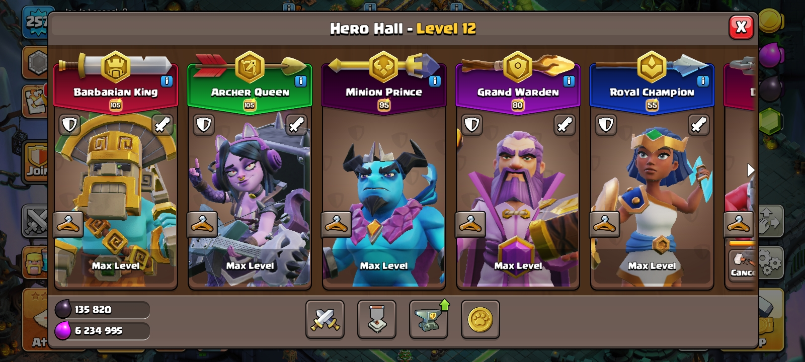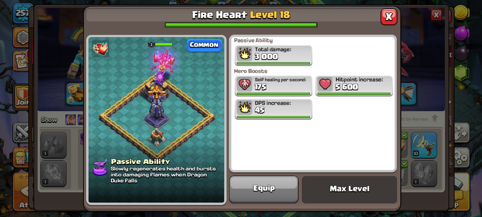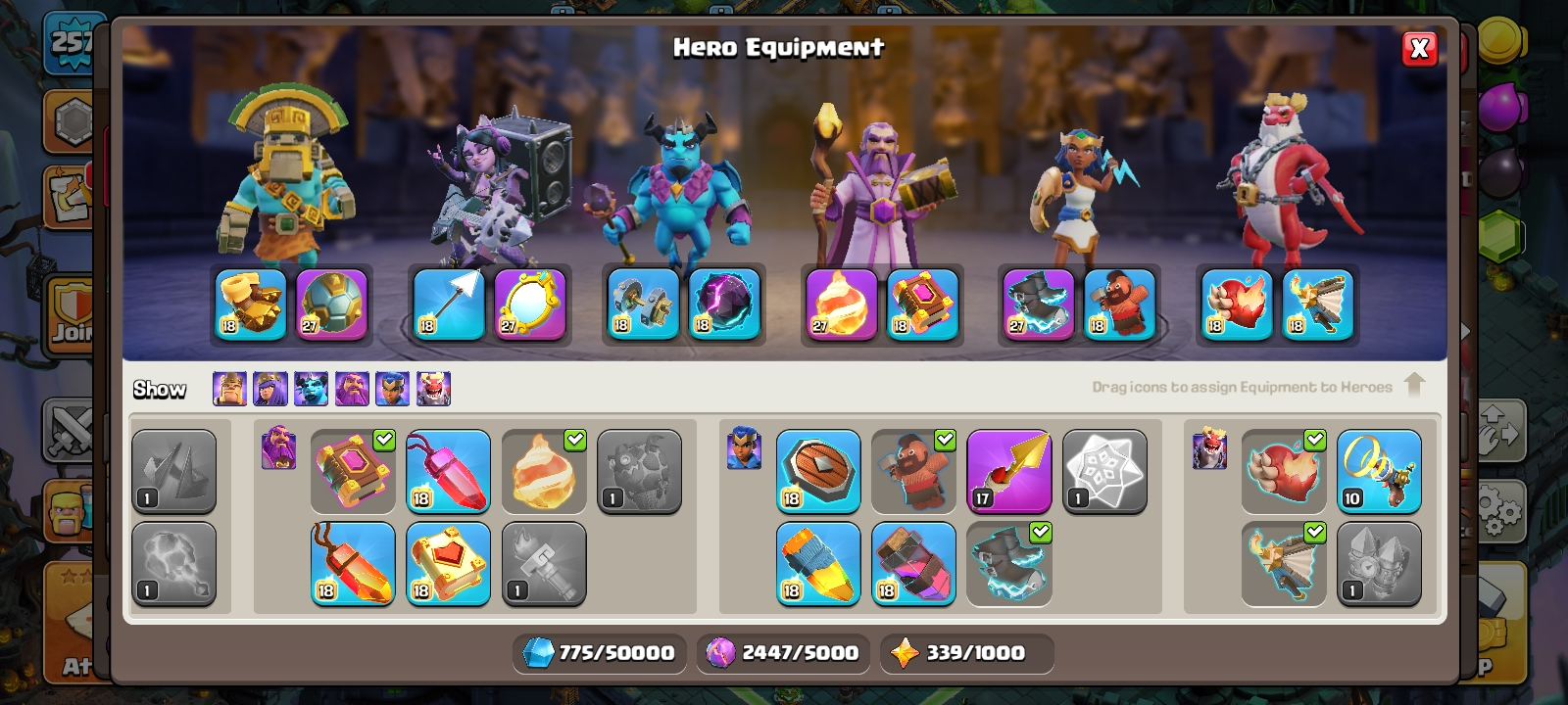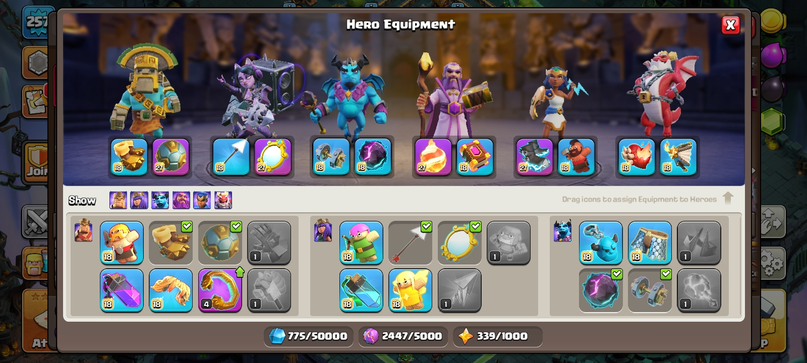 RARE🔥TH 18 almost max🔥max heroes🔥max pets🔥max troops🔥max guardians☠️4 max epic equipment⚒️6 builder’s✅cn on✅2 scenery and 10 heroes skin