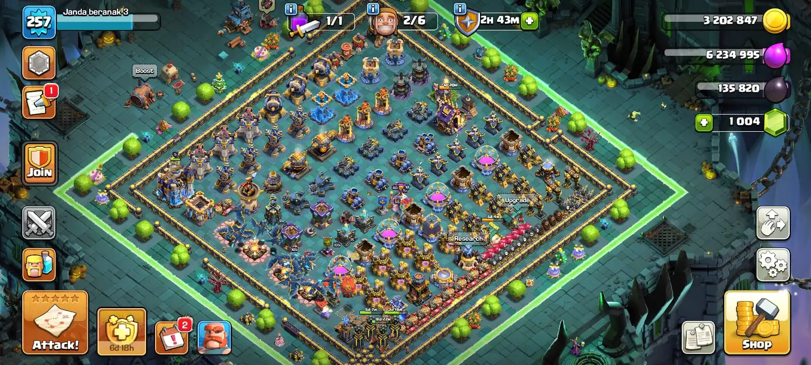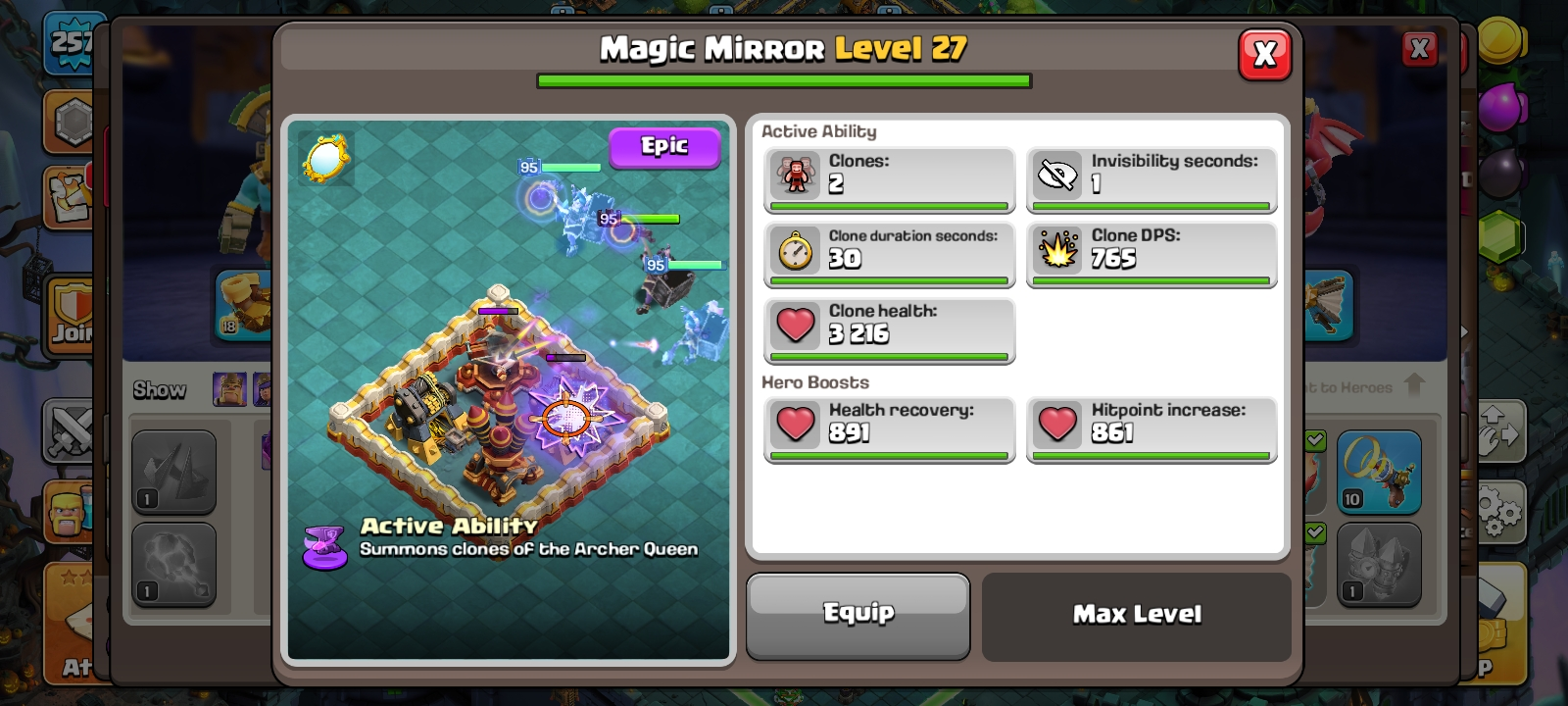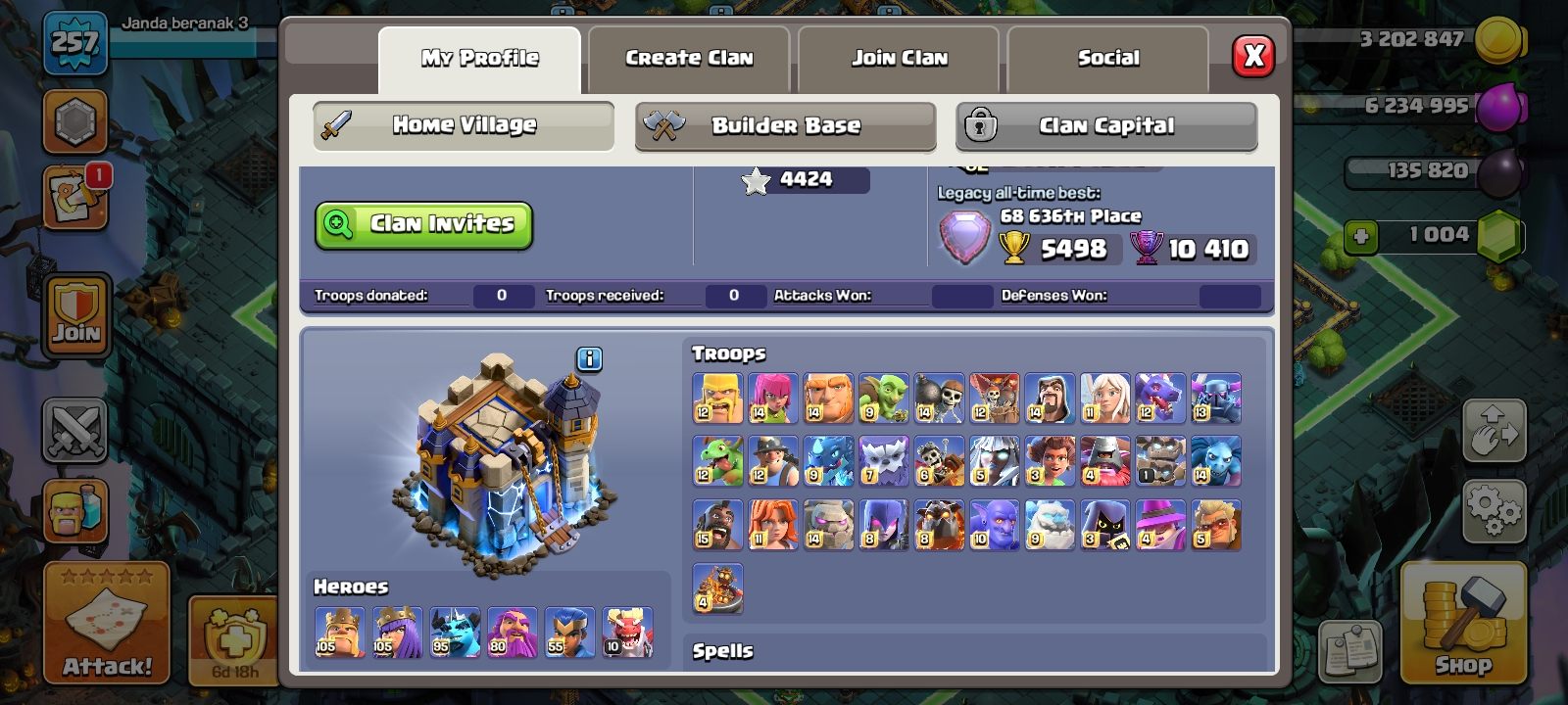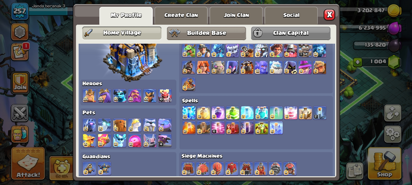 RARE🔥TH 18 almost max🔥max heroes🔥max pets🔥max troops🔥max guardians☠️4 max epic equipment⚒️6 builder’s✅cn on✅2 scenery and 10 heroes skin