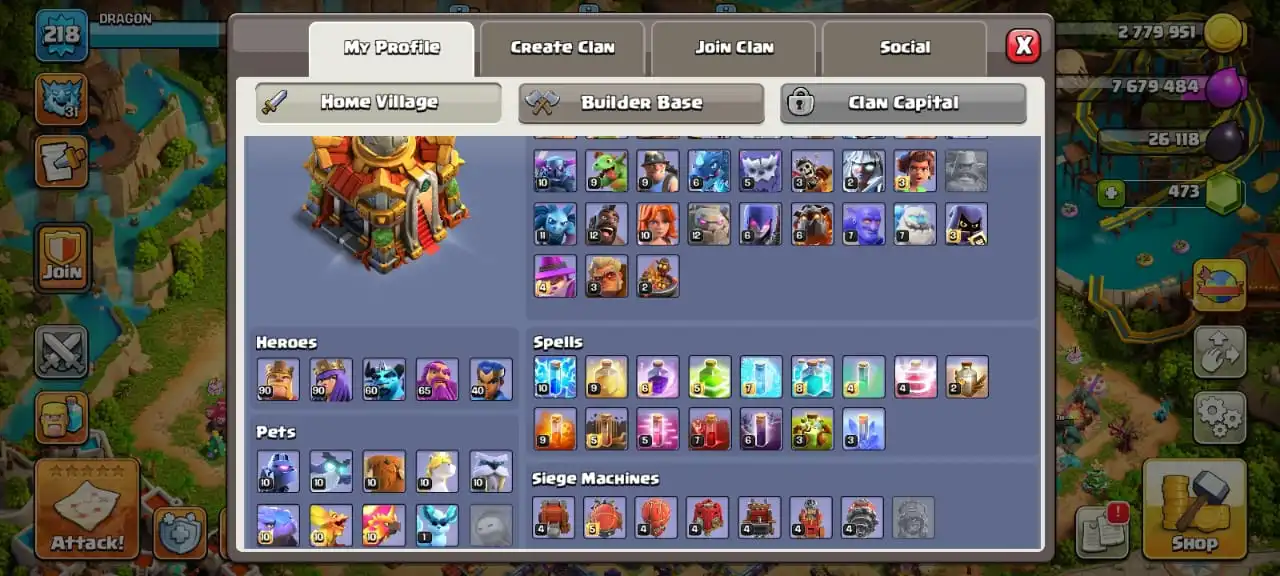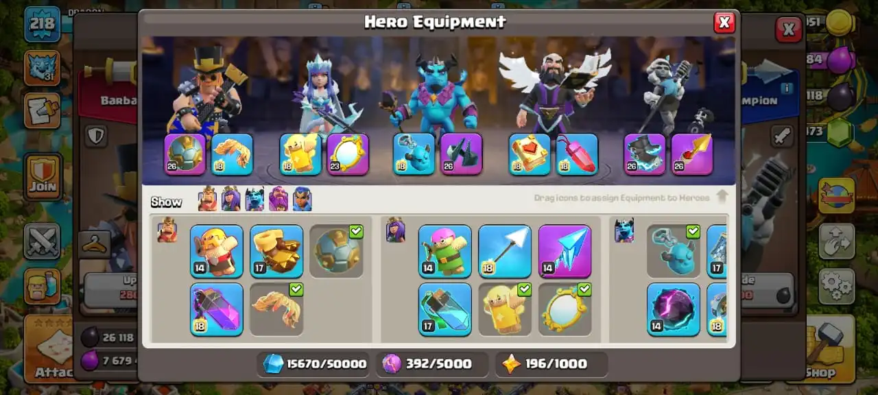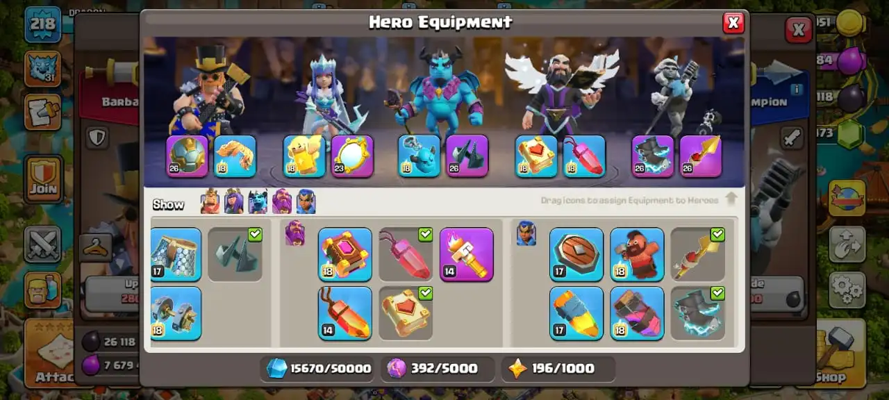 Sale🔥TH 16 ex th 15 MAX🔥high heroes level 90/90/60/65/40☠️7 epic equipment⚒️6 builder’s✅2 scenery and 12 heroes skin