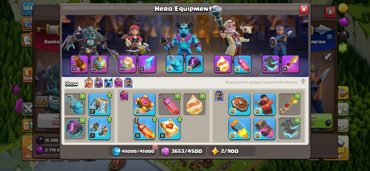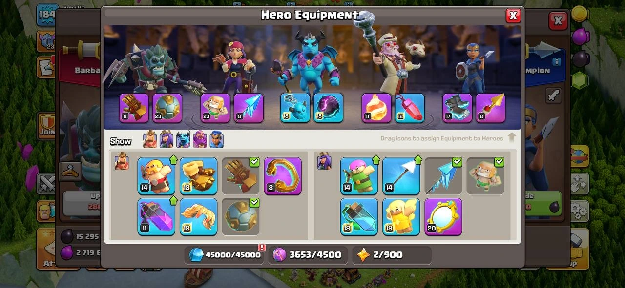 {STACK 9 EPIC}🍀TH 16 {12 Max Equip } 💫 1050 CWL MEDALS 🥇 PERFECT ACC ⭐HIGH HEROES 💥90-90-60-65-35 HEROES 🏅184 XP LVL ♾️ OP MAGIC ITEMS ❤🔥LABORATORY ⚡️ CWL MEDALS 💗 500 GEMS RENAME ✨OP HEROES SKIN 💎 648 WAR STAR ⭐ SUPER FAST INSTANT DELIVERY