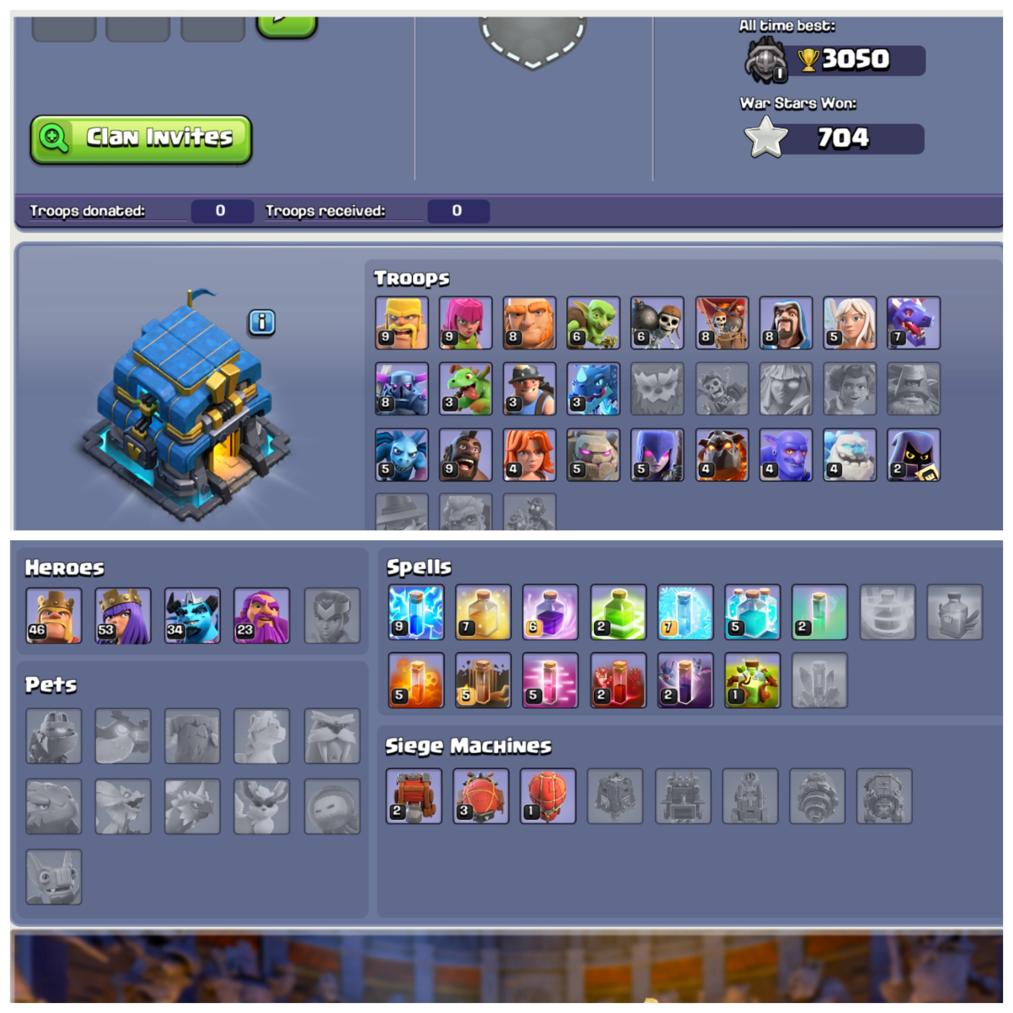 ⚡ TH 12 Punisher ✨ XP 111 🛡️ Heroes: BK46 AQ53 MP34 GW23 🏰 Defence Mostly Max 🎯 Stacked Magic Items 🚀 Instant Delivery