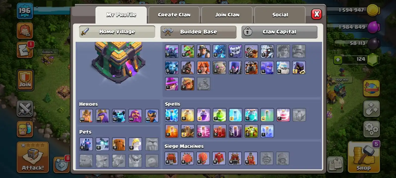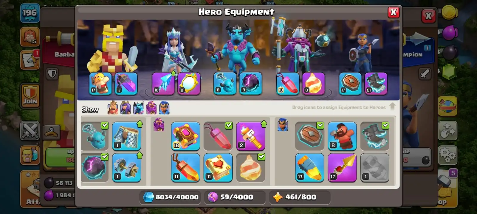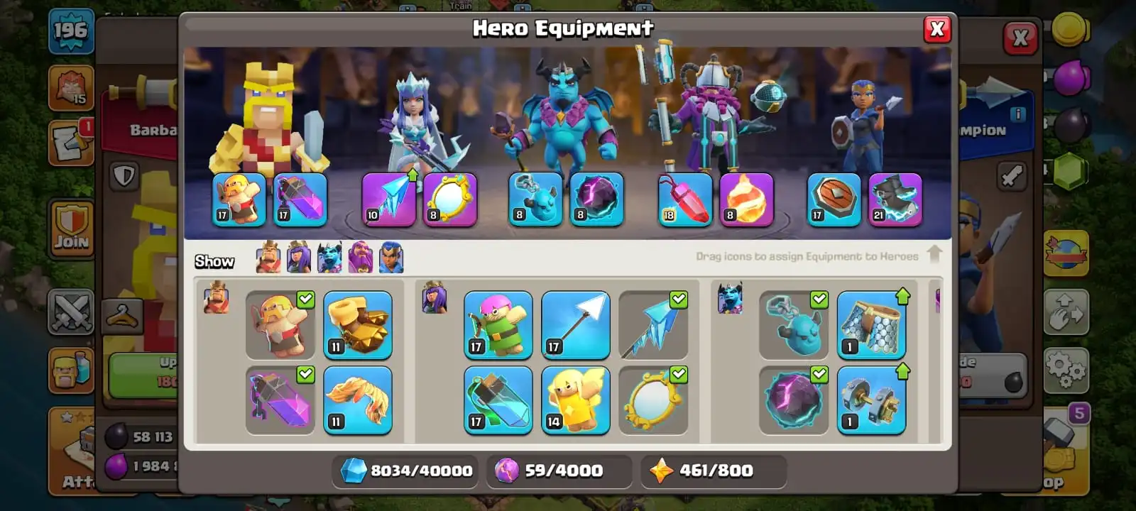 TH 14 DEFD MAX🔥MENDALS 365🔥HEROES 80-80-51-55-30 FROZEN ARROW & MAGIC MIRROR & FIRE BALL & ROCKET SPEAR ON🔥JUNGLE & CLASHRAMA SCENERY🔥MAGIC ITEMS READY🔥FULL ACCESS ACCOUNT🔥