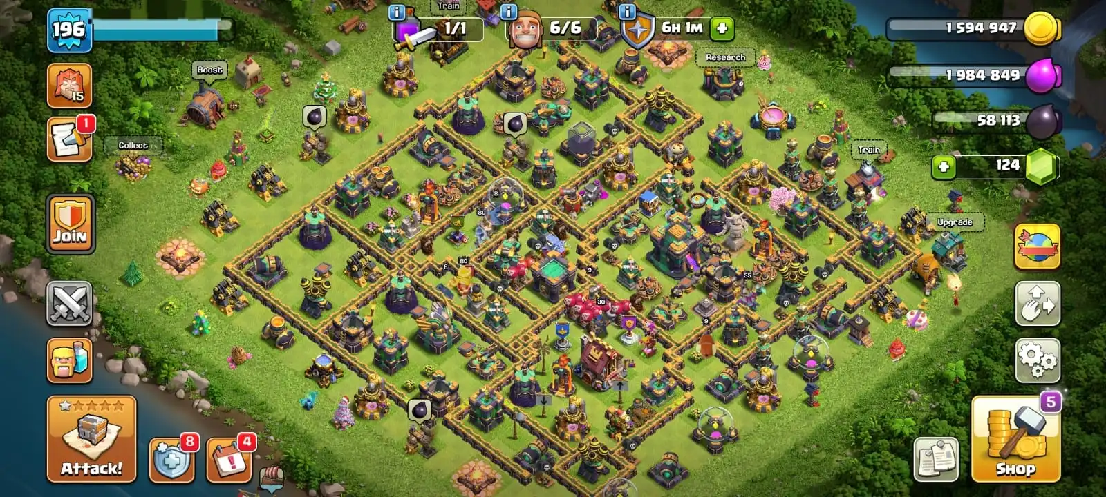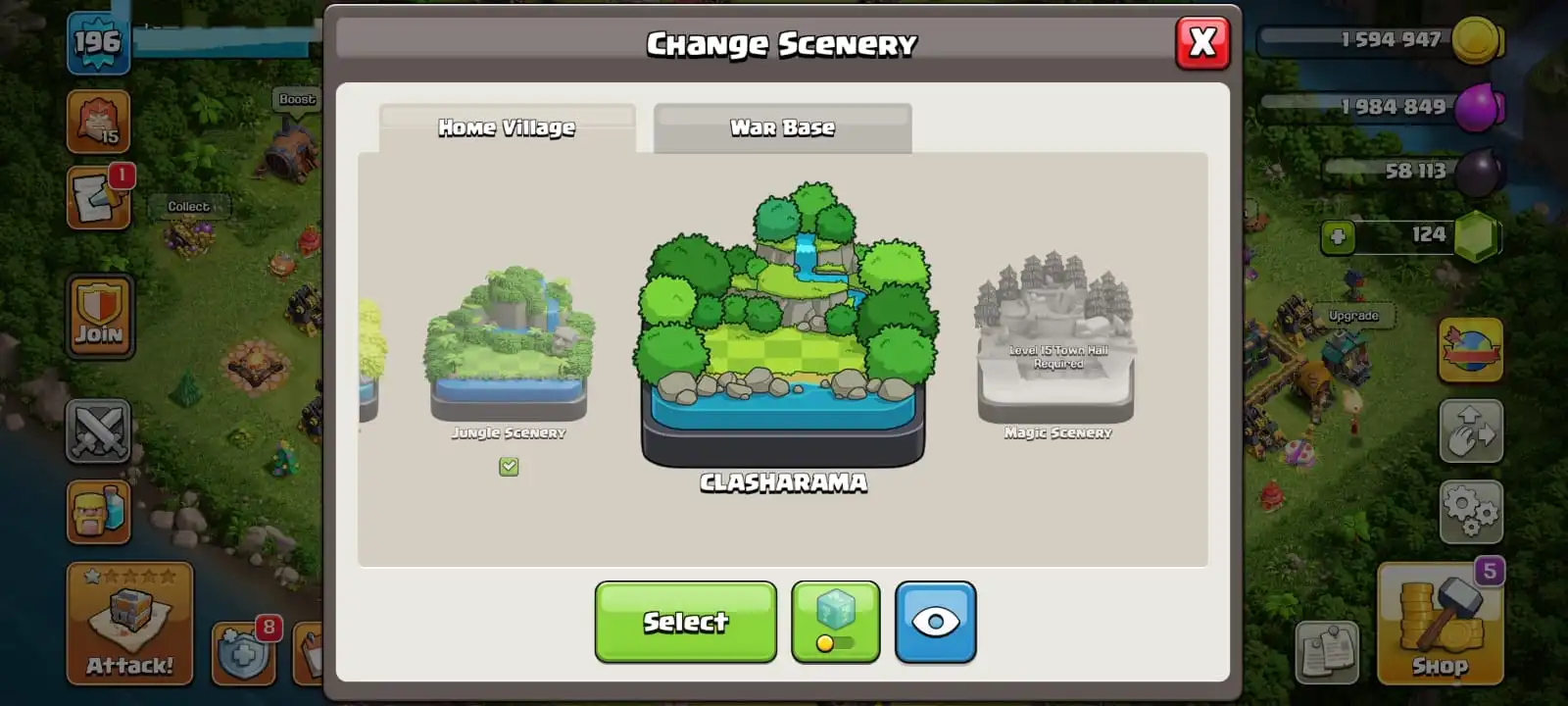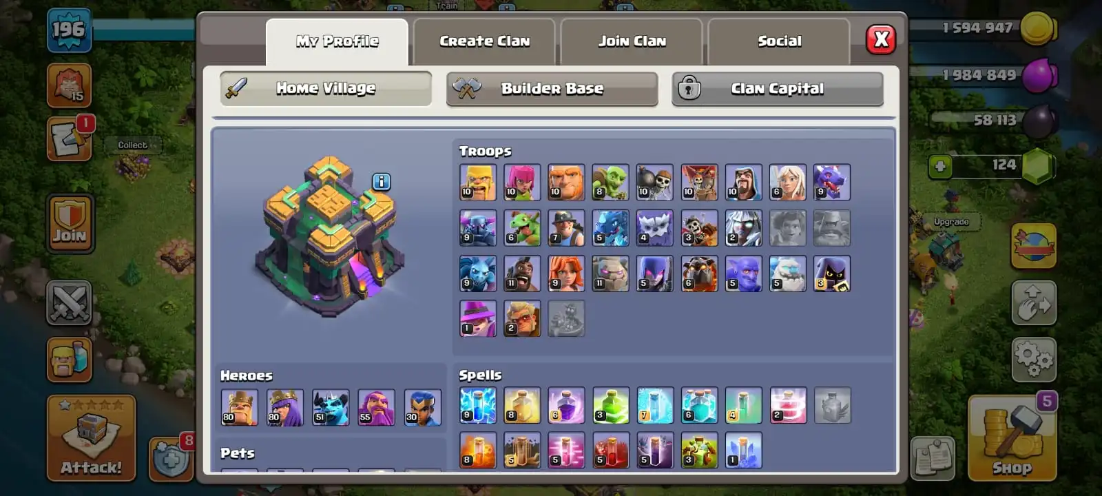 TH 14 DEFD MAX🔥MENDALS 365🔥HEROES 80-80-51-55-30 FROZEN ARROW & MAGIC MIRROR & FIRE BALL & ROCKET SPEAR ON🔥JUNGLE & CLASHRAMA SCENERY🔥MAGIC ITEMS READY🔥FULL ACCESS ACCOUNT🔥