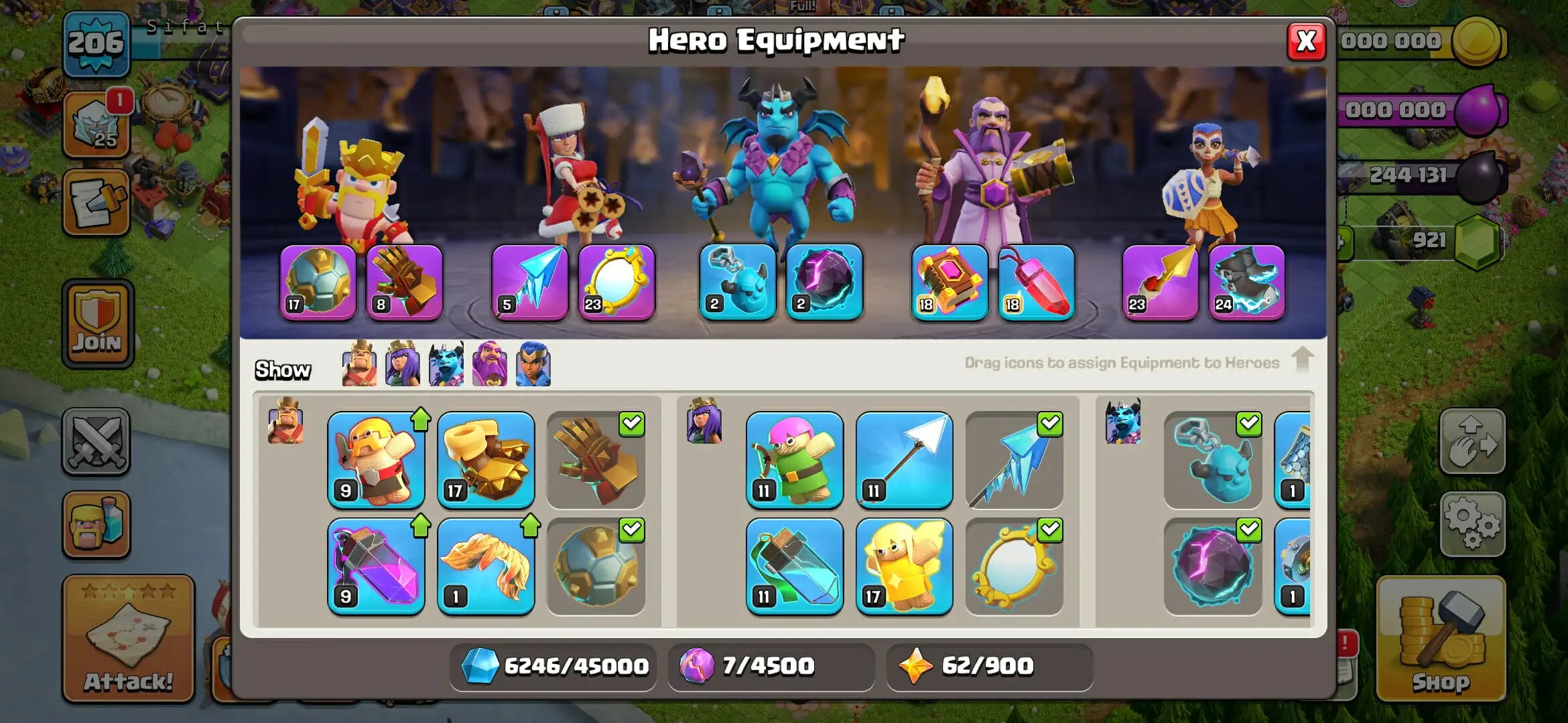 TH 17 Best πΉπGood Heros- 70/87/62/63/30ππΉ Purpel WallsπΉπ8 High Rare Equipment πΉπ Nc βΈ± 500 πΉβοΈ Instant Delivery (8)