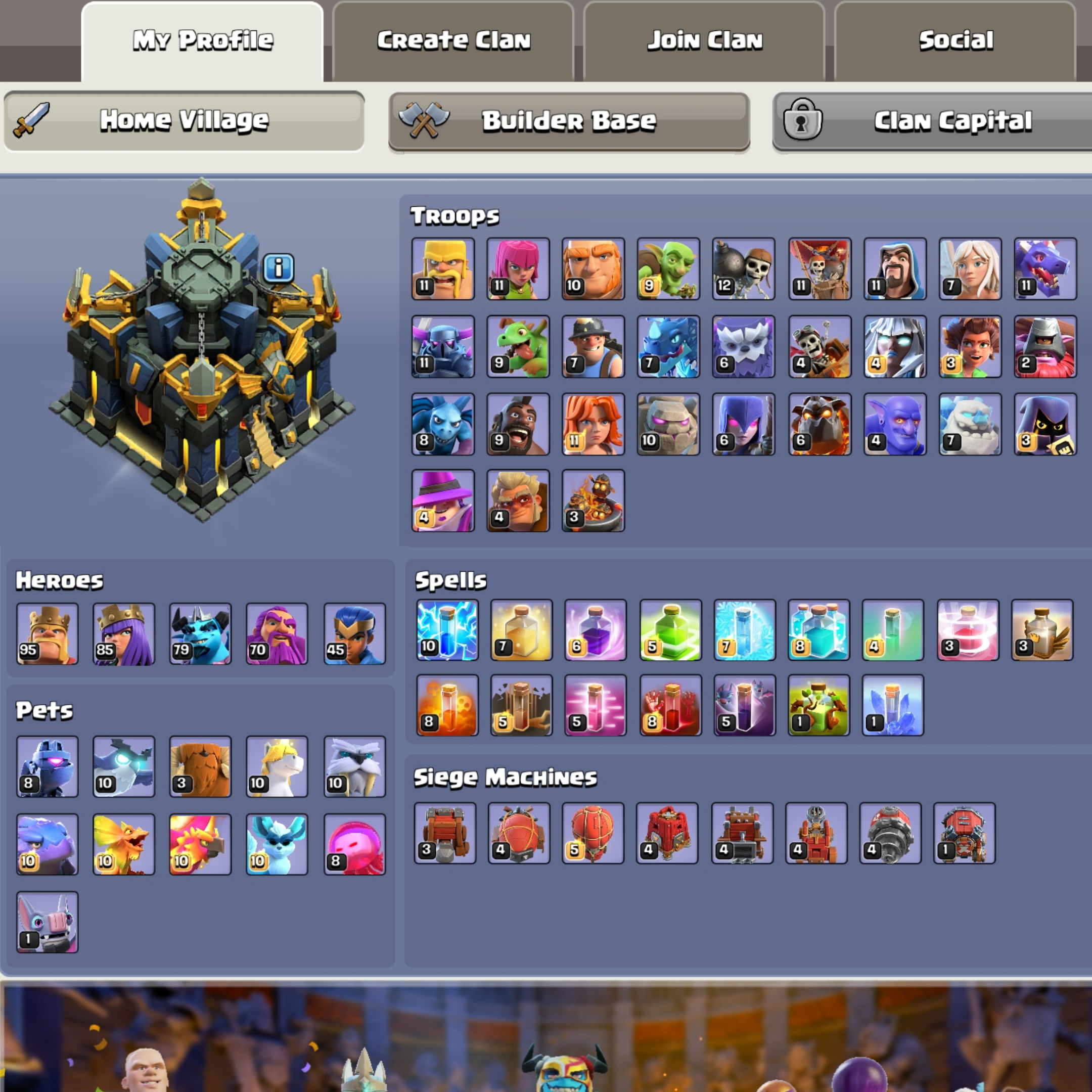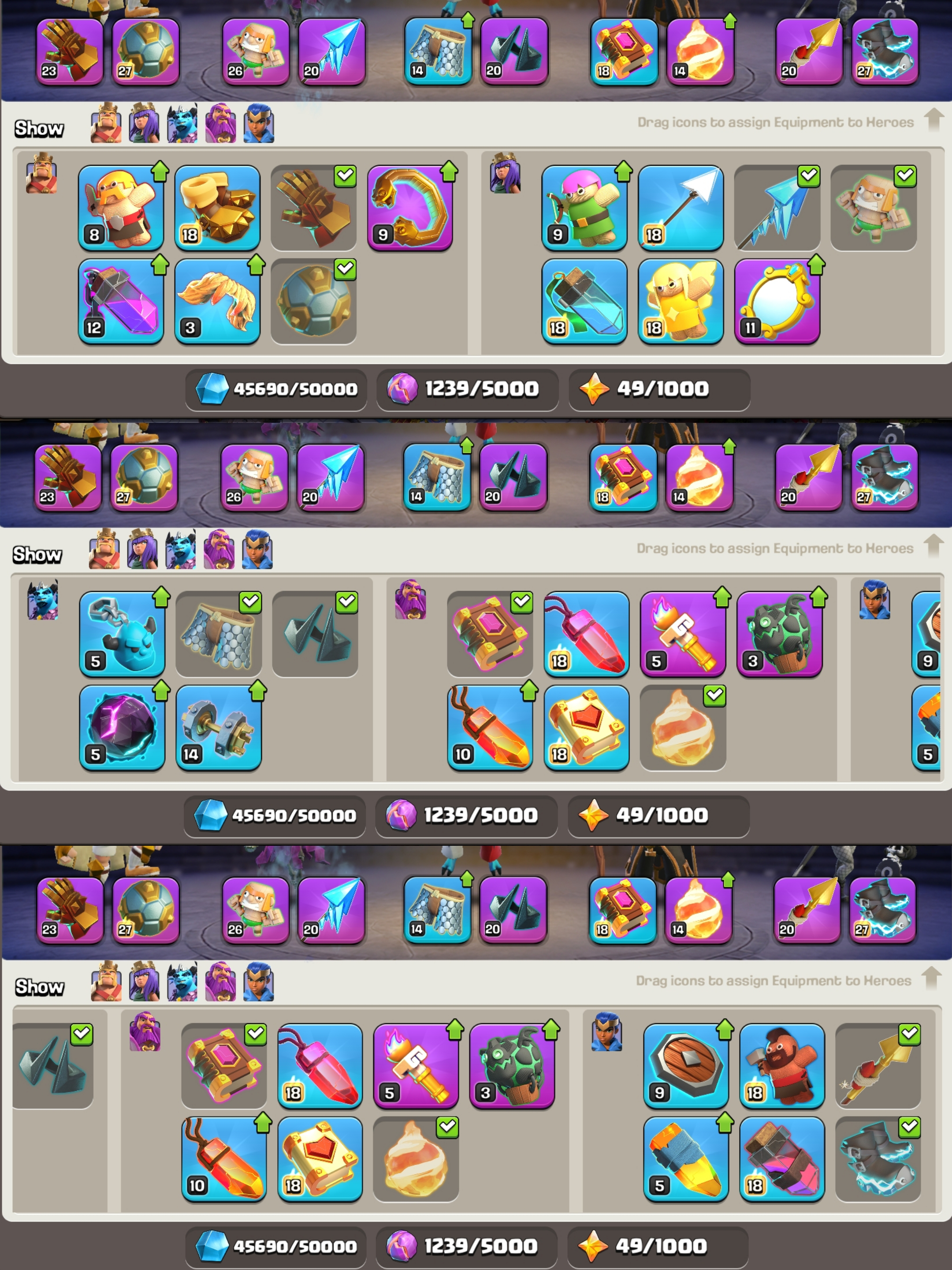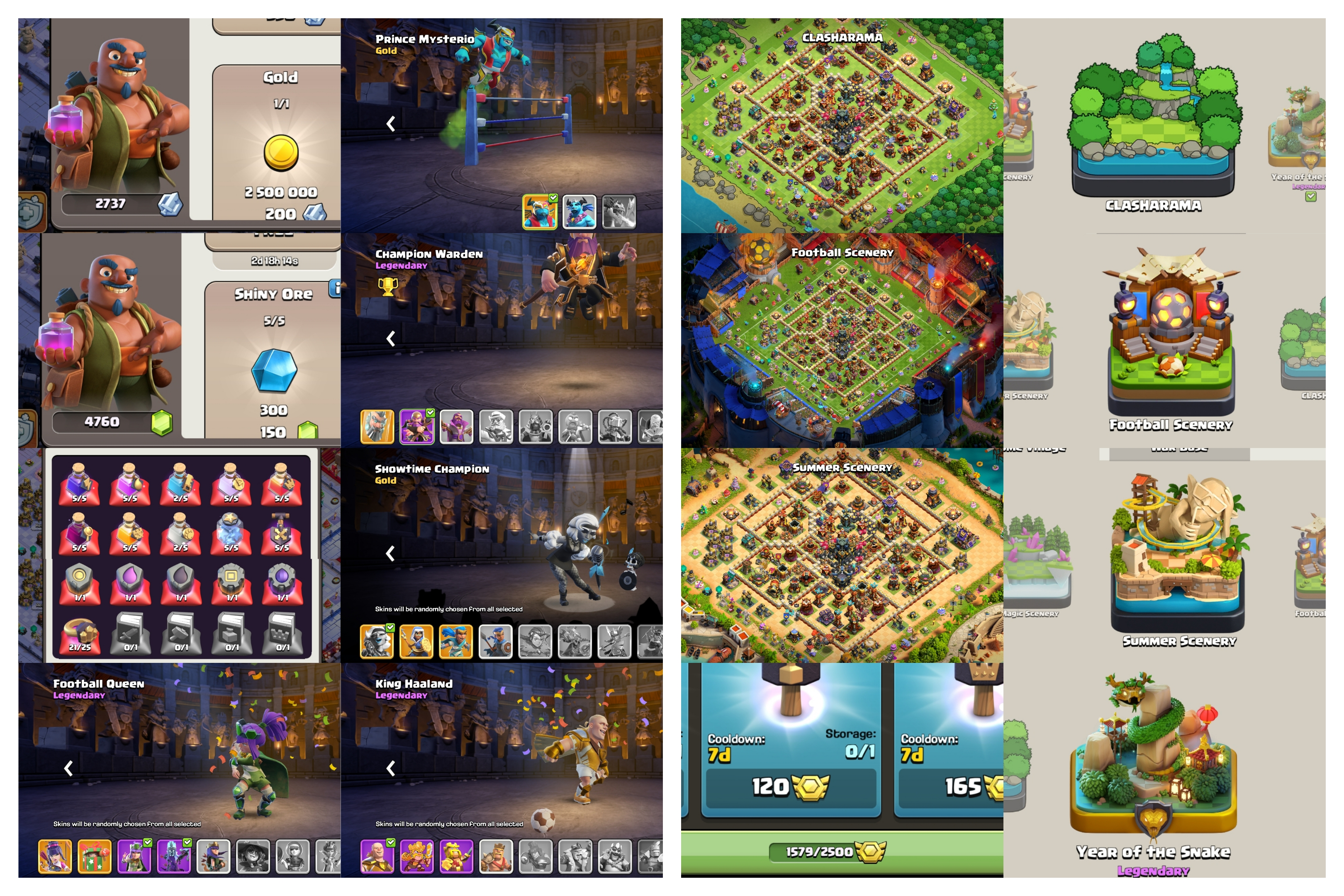 ⭐ TH 17 ⭐ LEGENDARY SCENERY + 2 PAID SCENERY ⭐ ALL EPIC EQUIPMENT ( 2 EPIC MAX + 5 Level 20 ) ⭐ HEROES K-95 AQ-85 MP-79 GW-70 RC-45 ) ⭐ 4700 GEMS ⭐ NAMECHANGE 1K