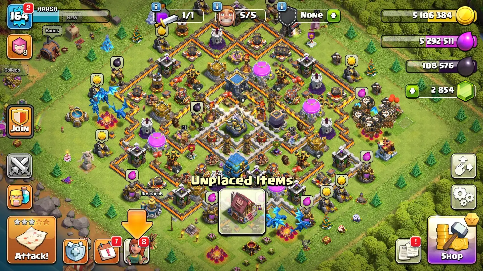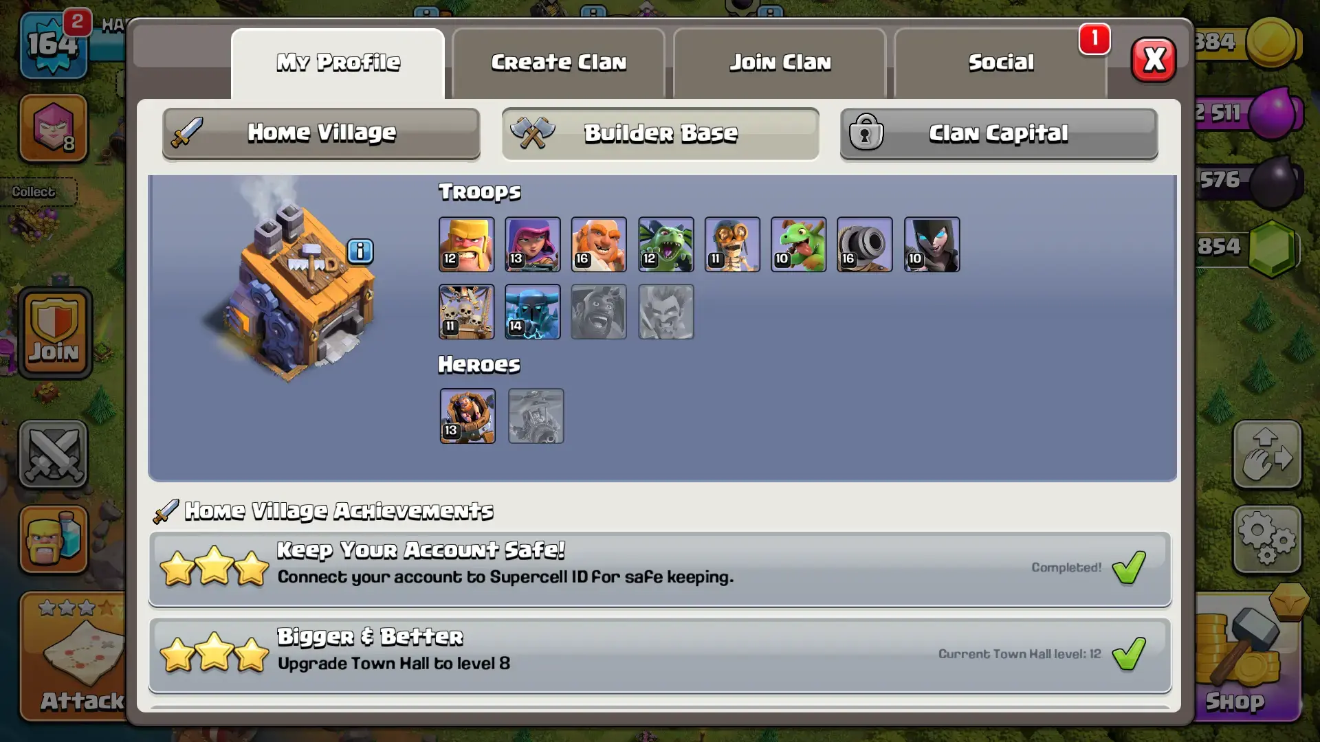 TH12 | 164 LVL | 3296 Trophy | 2854 GEMS | 49BK | 53AQ | 23GW| 0RC | FULL ACCESS | IOS/ANDROID (SCREENSHOTS INSIDE)