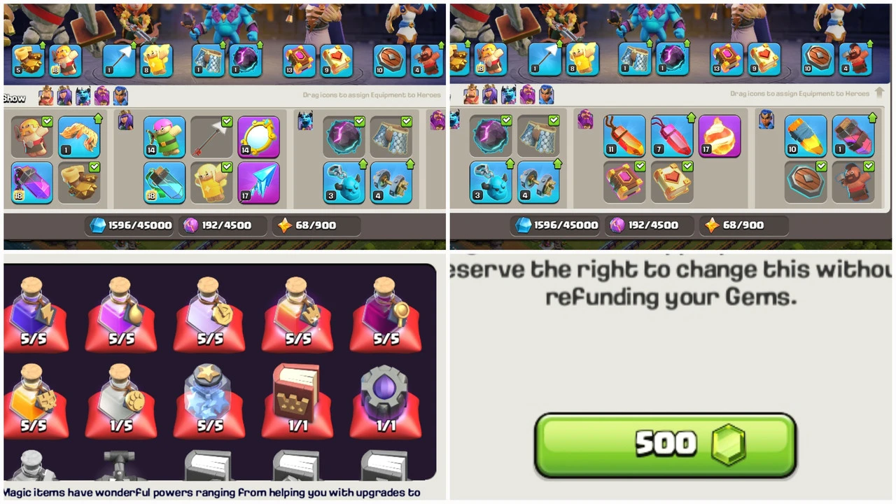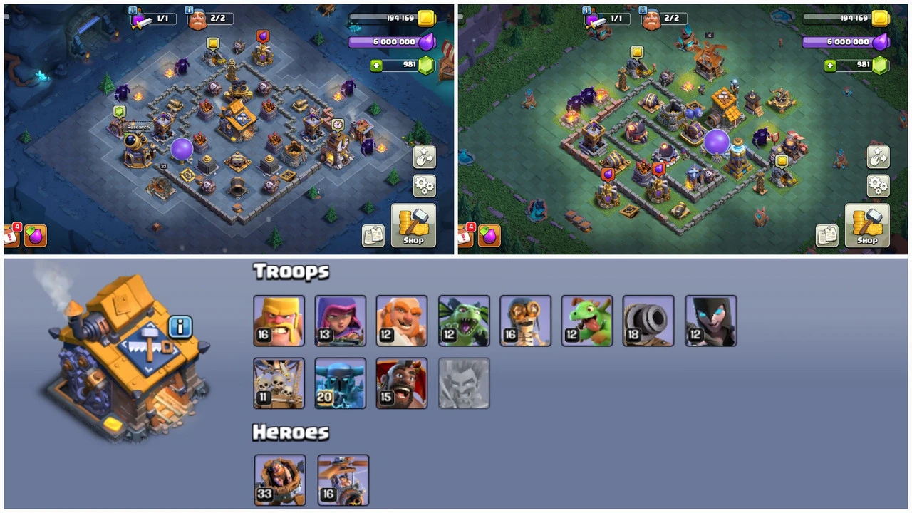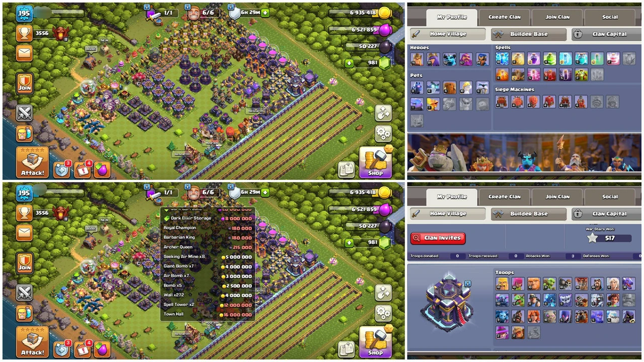 TH15 Near Max Defence โ๏ธ Level 195 ๐งค Heroes 74_81_52_57_34 ๐งโโ๏ธ Gems 981 ๐ฅ 6 Skin ๐ 3 Epic equipment ๐ชต Nc 500 (Android &iOS) ๐ชถ M3247