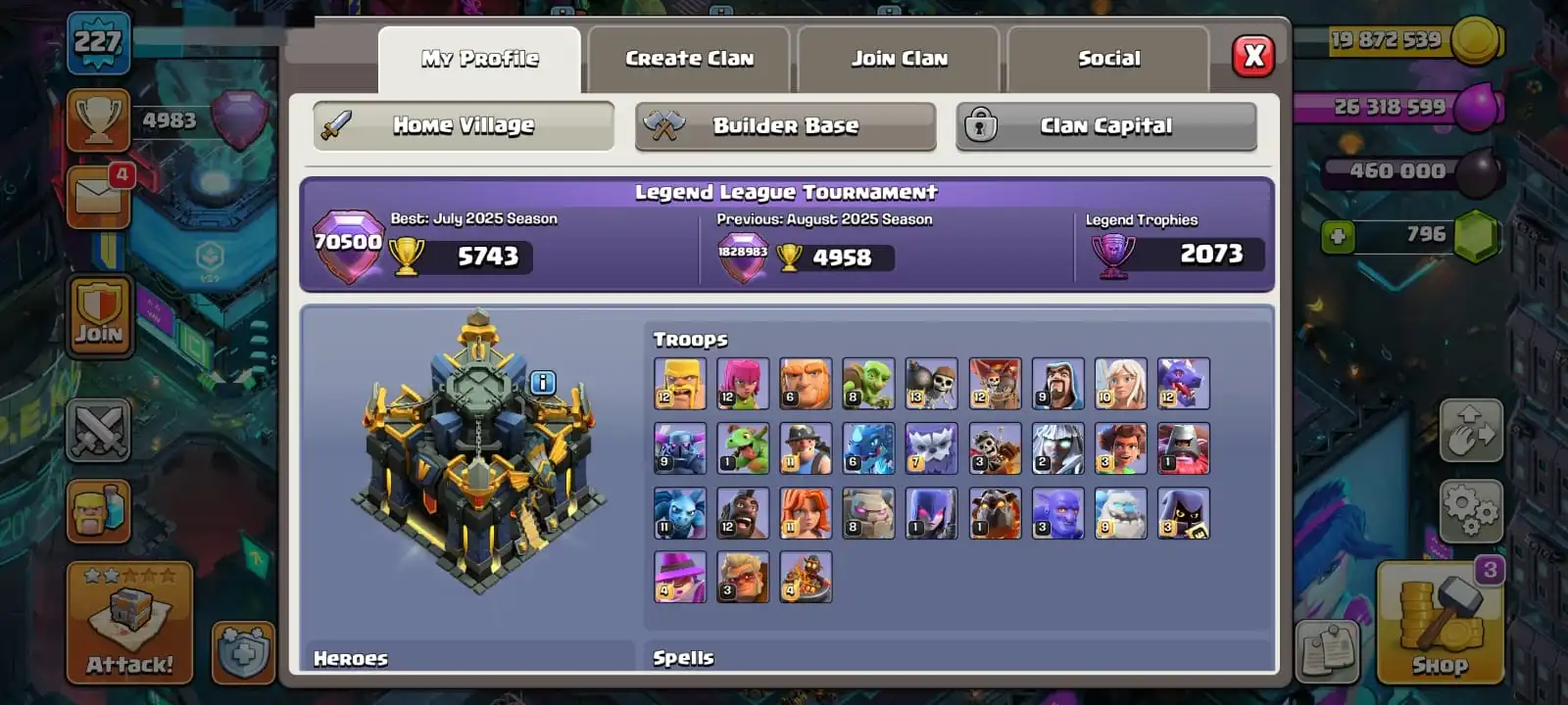 VERY RARE [ 5 EPIC EQUIPMENT MAX ]🔥TH 17 MAXED DEFENCE🔥HEROES MAX 100-100-73-75-50 FULL EPIC EQUIPMENT🔥CYBER & WILD WEST SCENERY🔥MAGIC ITENS READY🔥FULL ACCESS & GUARANTEED🔥