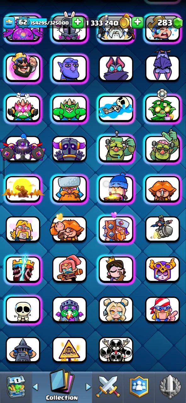 ✌️ 15100 TROPHIES 🏆 21 EVOLUTIONS 😈 FULLY MAXED 💎 ULTIMATE CHAMPION 💪 62 XP 🎯 31 ELITE CARDS 👑 KT 15 🌟 EXCLUSIVE BANNERS, SKINS & DECORATIONS ✨️ RARE EMOTES 🔥 SUPERCELL ID & NAME CHANGEABLE ✅️ CHEAPEST ❄️ INSTANT DELIVERY 🚚