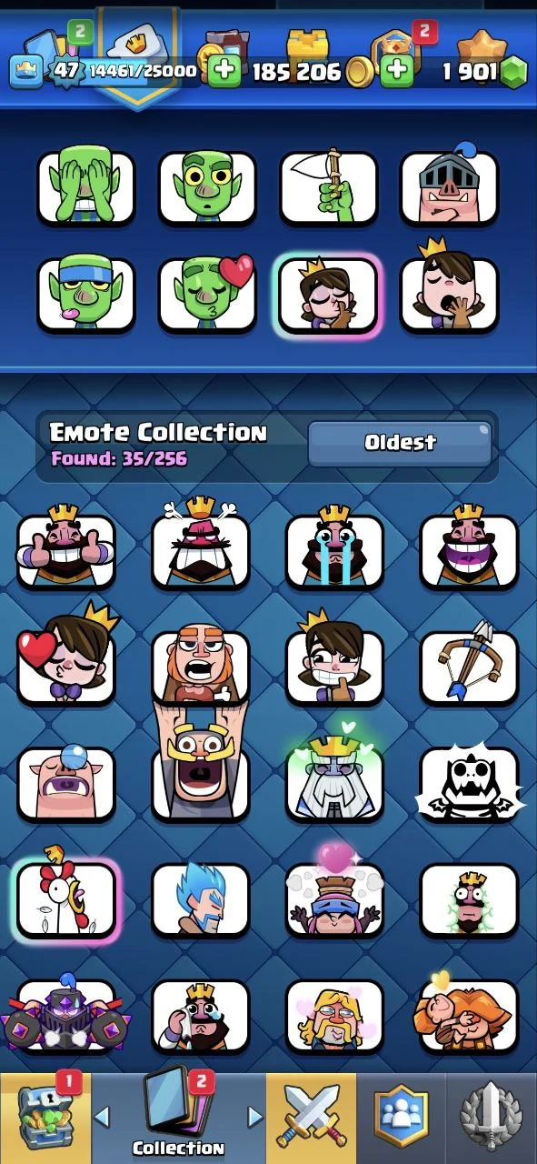 30% OFF ✨ PRINCESS SHUSH EMOTE✨ KT 14 🔱 LVL 47 🏆 CUPS [9619] ✨ MAX CARDS [10] ✨ ELITE [3] ✨ EVO [7] ✨ LVL 14 [7] ✨ GEMS [1900] ✨ EMOTES [35] ✨ SKINS [6] 🔱 CARDS [119] ✨ 10000% SAFE
