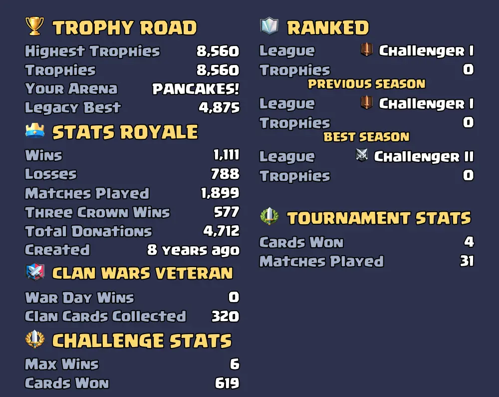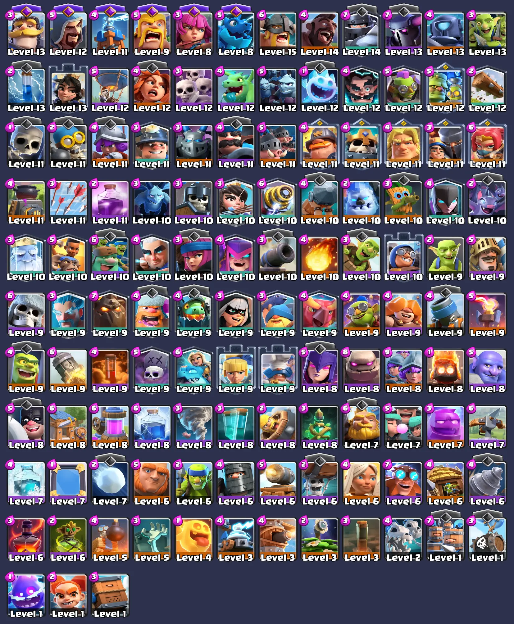 6 CHAMPIONS π 8560 TROPHIES π 13 KING TOWER π 39 LVL π 123 CARDS π₯ 2 MAX CARDS π 31 EMOTE π 6 EVO CARDS π€ ANDROID & IOS π€ INSTANT DELIVERY