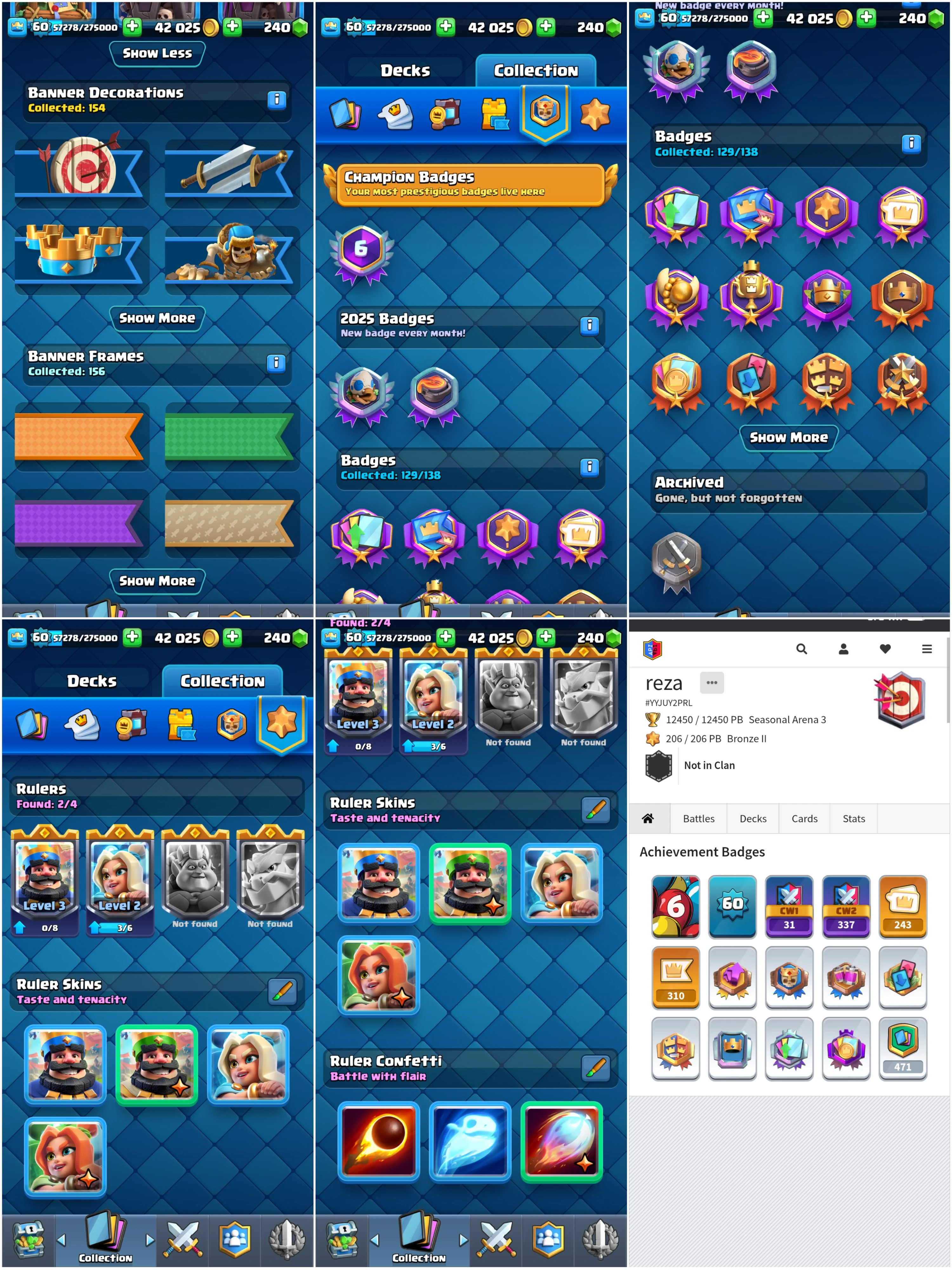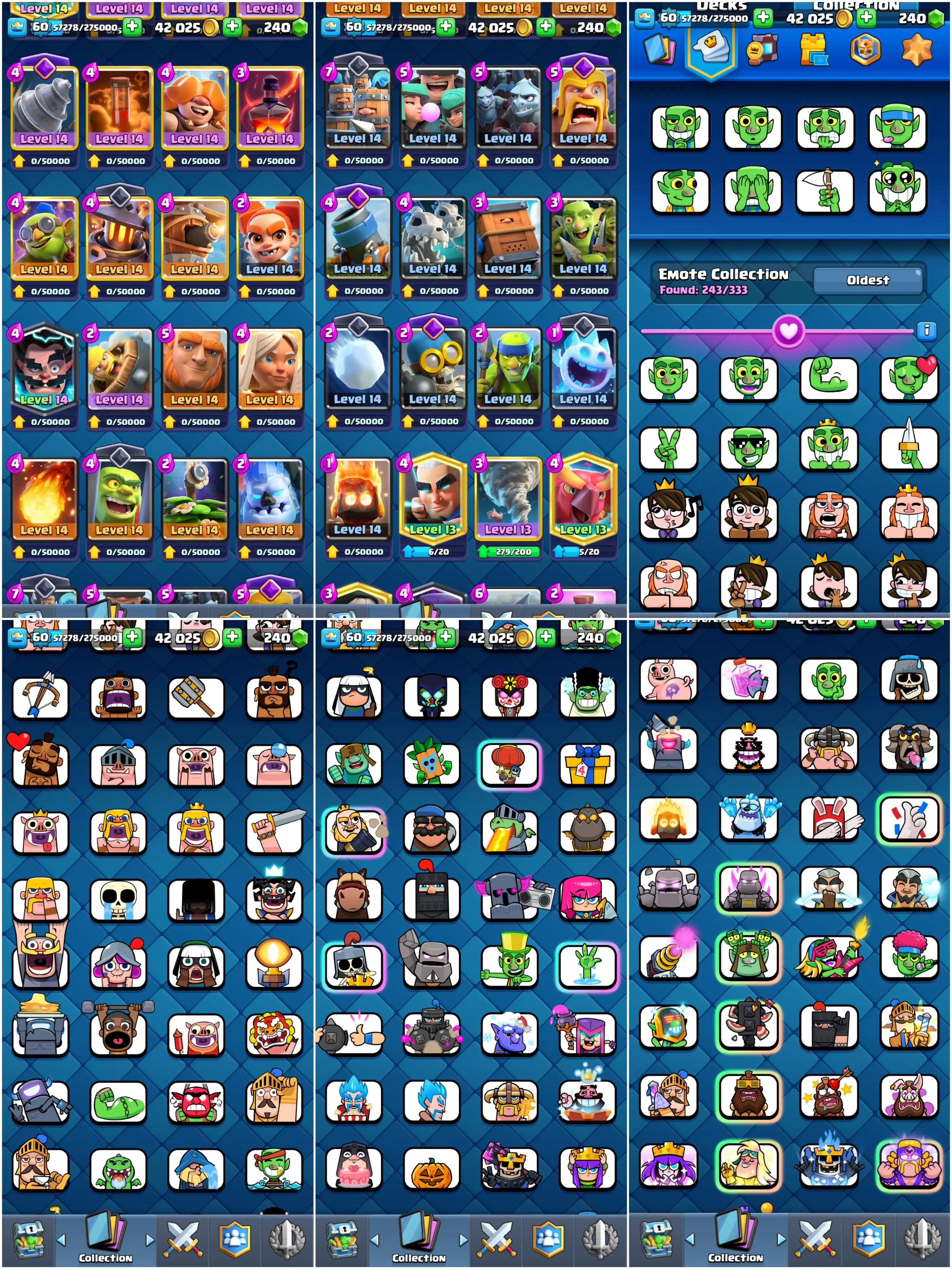 🎖️ 6 Years Badge 🏆 Level 60 + KT 15 ⚔️ 12450 Trophies 🌟 79 Max Cards (20 Elites) + 19 Evolutions 🎭 243 Crazy Emotes • 12 Tower Skins 🚀 Instant Delivery