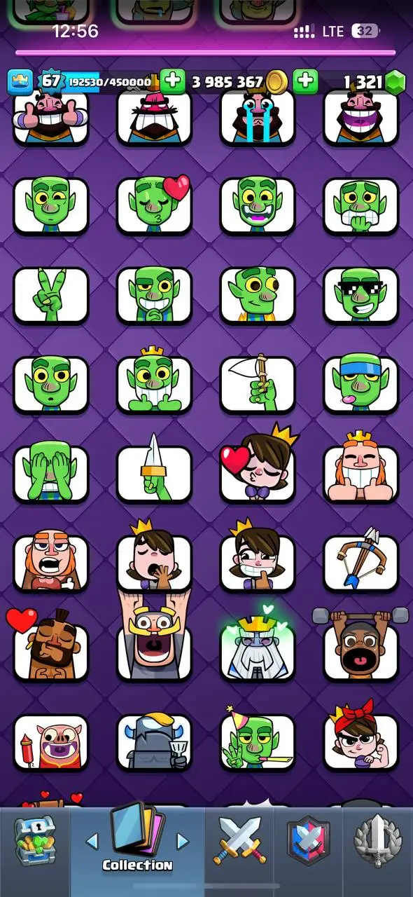 20 WIN BADGE ๐จ 120 CARD MAX ๐ฅถ 68 ELITE CARD ๐ 25 EVOLUTION ๐ฅฐ 150 RARE EMOTE ๐คฏ GOBLIN KISSING EMOTE ๐ INSTANT DELIVERY ๐