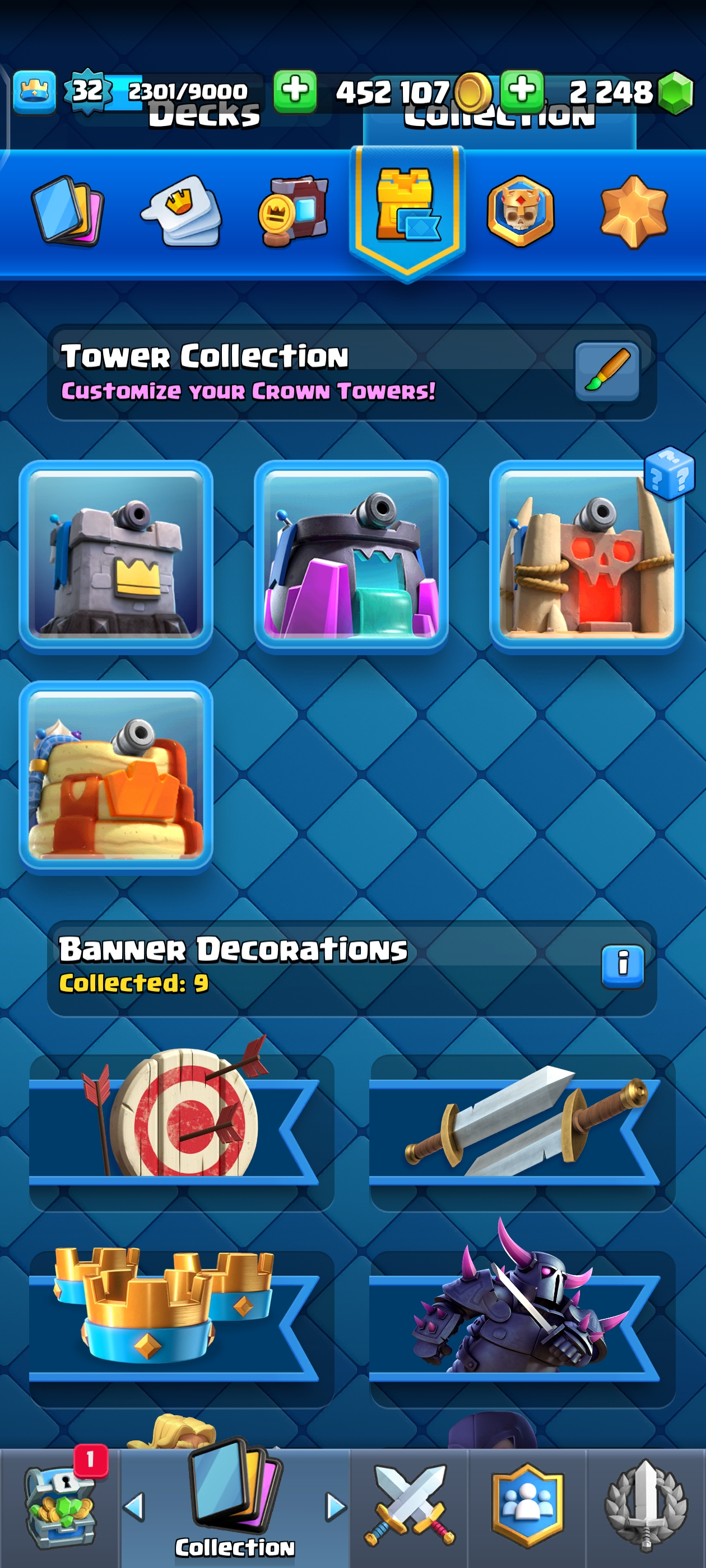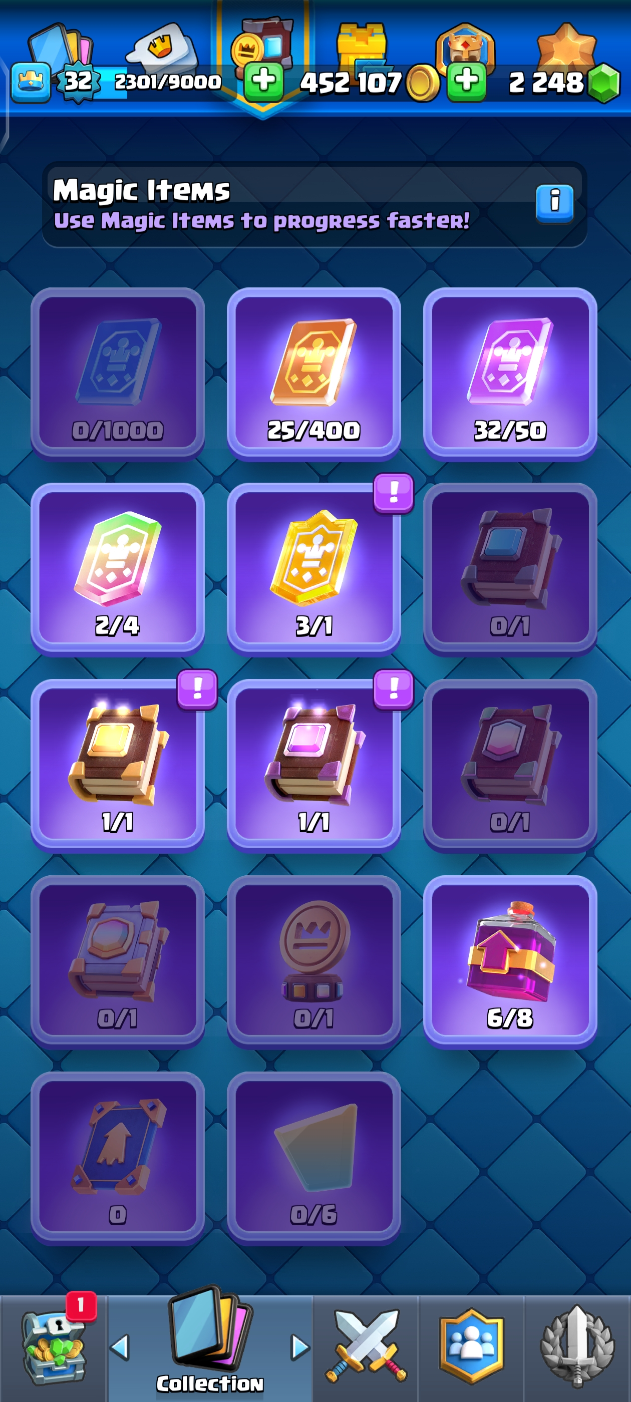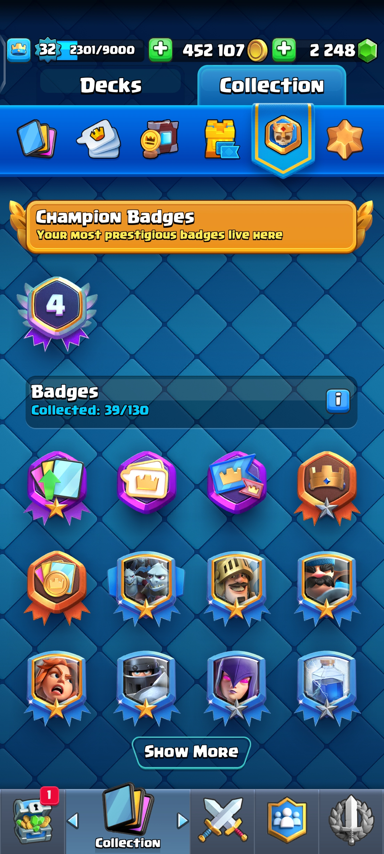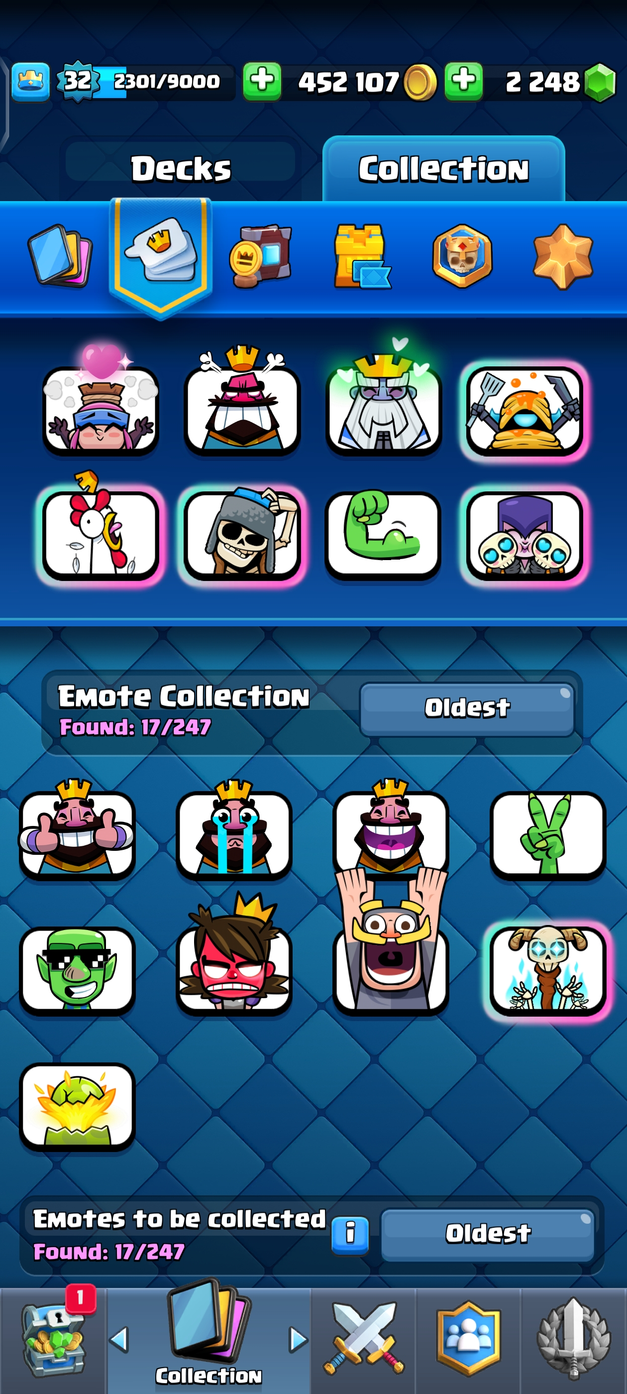 6864 Trophies π | 4 Years old π | (3x Lvl 13, 10x Lvl 12) | KT: 11 π | Level: 32 | Arena 18 π― | 112 Cards π | 452,107 Gold πͺ | 17 Emotes | NC: FREEΒ π | β‘ Instant Delivery π | See Pics for Full Details! π