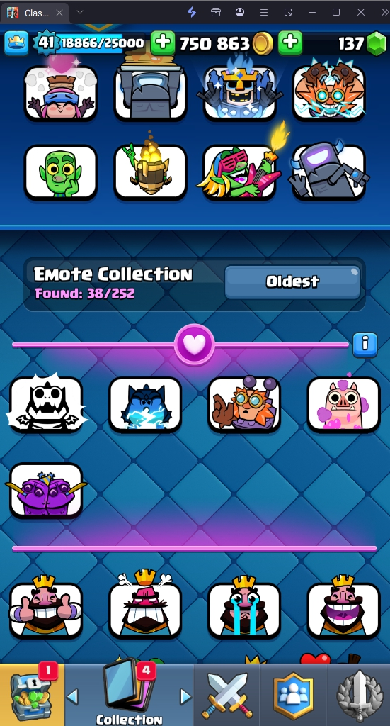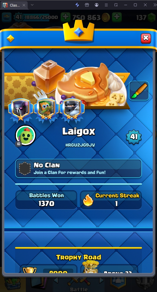 9000 TROPHY 🏆 41 LVL 💯 KT 13 👑 121 CARDS ♦️ 7 MAX CARDS 👑 1 ELITE CARDS  🔮 6 EVO 💯 EMOTE 38 🎭 #RGU2JG9JV ⸱ TAG ACCOUNT ♥️