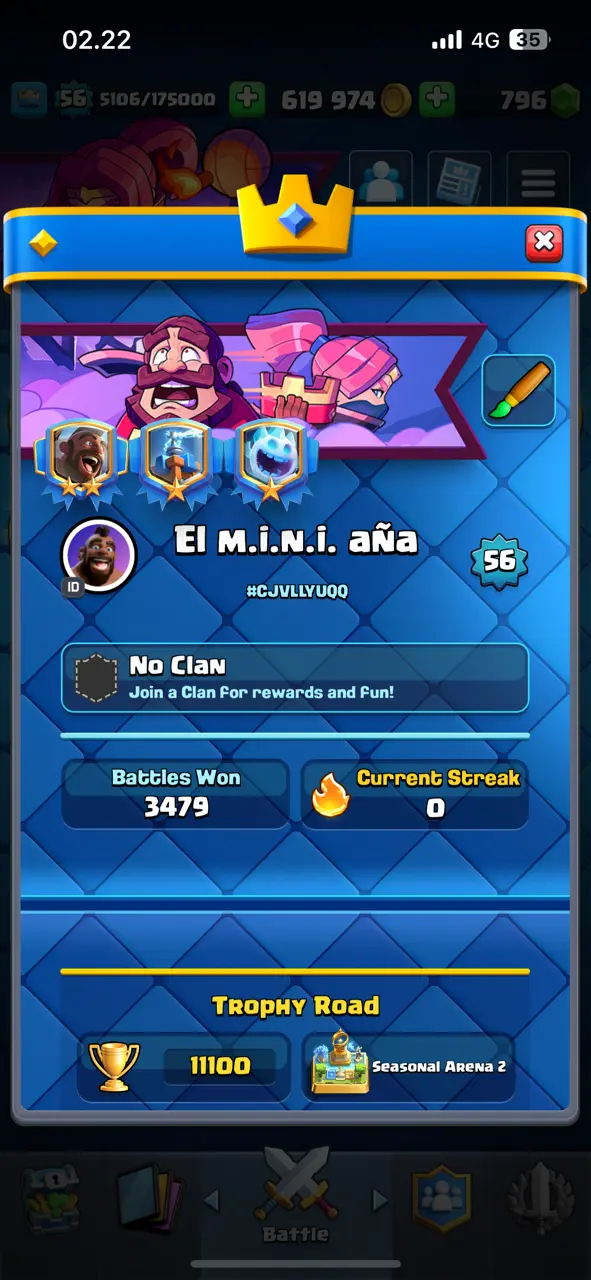 π₯ CHEAPEST π₯ CR Lv.56 π₯ Change Name ON π₯ Seasonal Arena 2 π₯ 11100 Trophies π₯ KT 15 π₯ 15 Evo Card π₯ 20 Max Cards & 9 Elite π₯ 123 Emotes π₯ 7 Tower Skins π₯ [F2519] π₯
