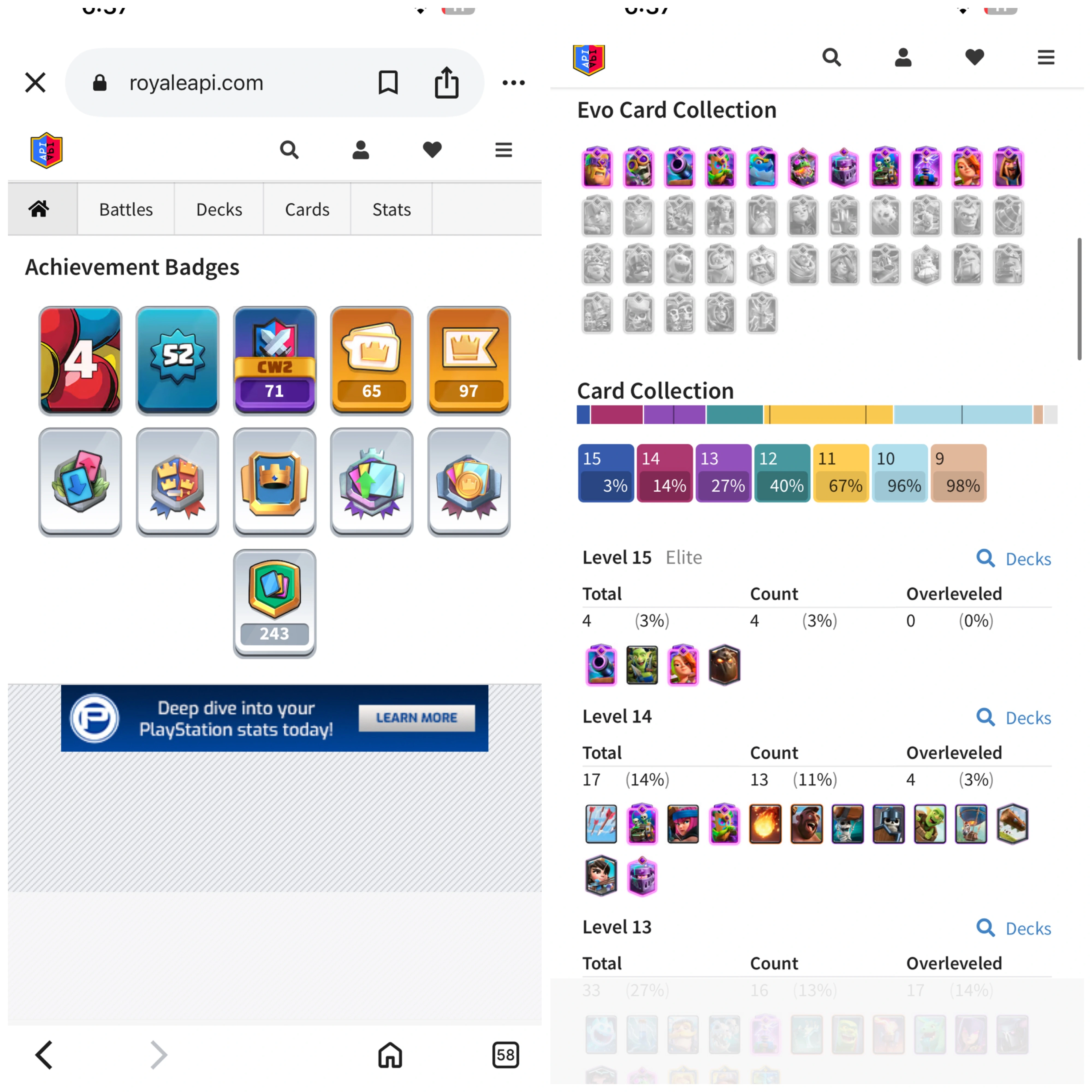 CR LVL 52 || 9175 TROPHY || 11 EVO || 4 ELITES || 17 CARD MAX || MASTER 1 RANK || KT -14 || MANY MAJIC ITEM || CHEAP DEAL